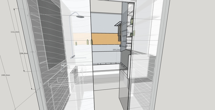 Первоначально смесители ванной и раковины находились справой стороны, но решили перенести на противоположную сторону по ряду причин: