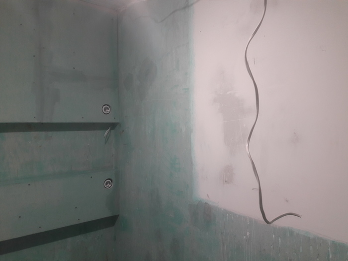 Сейчас замазываем швы, делаем шкафчики и т.д.