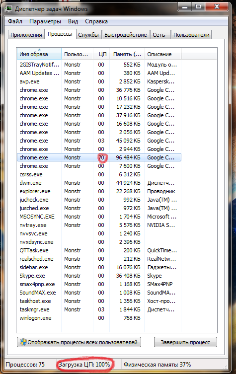 Привет пикабу! Может кто-то знает, или сталкивался, ЦП почти все время загружен на 100% в диспечере задач 70-95% занимает гугл хром, раньше такого не было, проц так сильно загружался только когда помимо хрома работал фотошоп или corel при этом я еще слушал музыку в вконтакте. Сейчас даже музыку в ВК послушать не могу, она прерывается и хрепит, про видео вообще молчу. Windows 7 x86, озу 4гб, процессор AMD athlon 64 3500+ 2,2 ггц