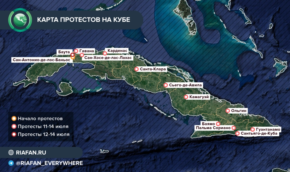 11 июля несколько тысяч протестующих вышли на улицы Кубы. Массовых оппозиционных протестов страна не видела последние 25 лет. Президент Кубы Мигель Диас-Канель заявил, что за протестами стоит Вашингтон, а кубинские эмигранты в США пытались выдать их за массовое антикоммунистическое движение, которое приведет к «свержению режима».