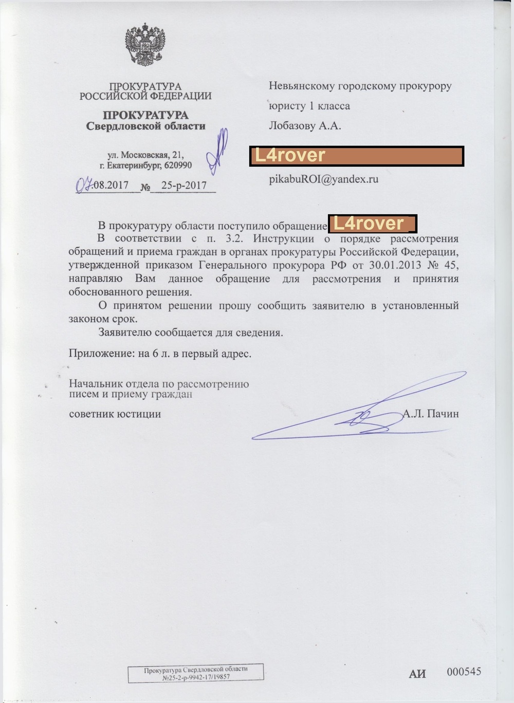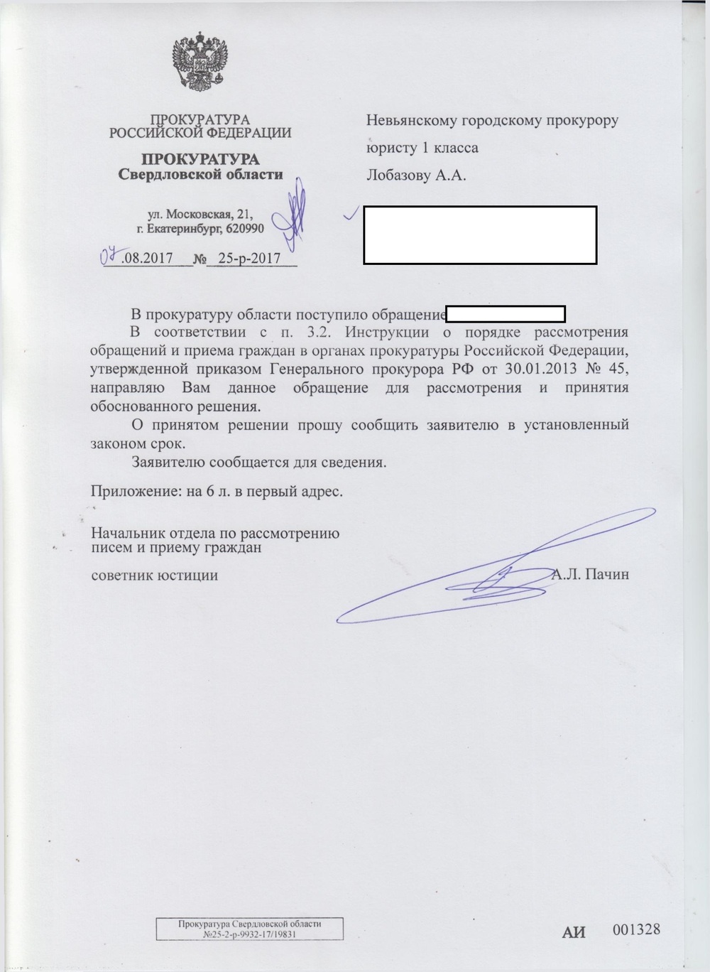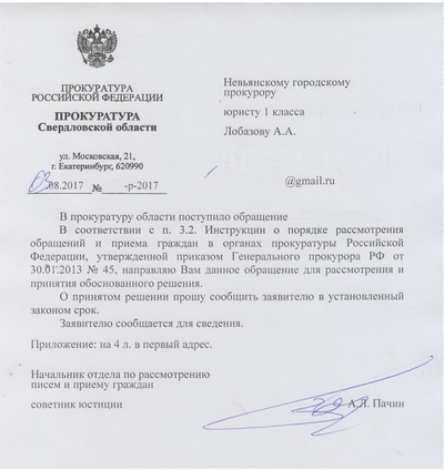3. Переходим на сайт Прокуратуры Свердловской области и выбираем "Невьянская городская прокуратура" или "аппарат прокуратуры области" (что предпочтительнее, пусть лучше Ваше обращение перешлют оттуда), либо отправляем всё через сайт Генеральной прокуратуры.