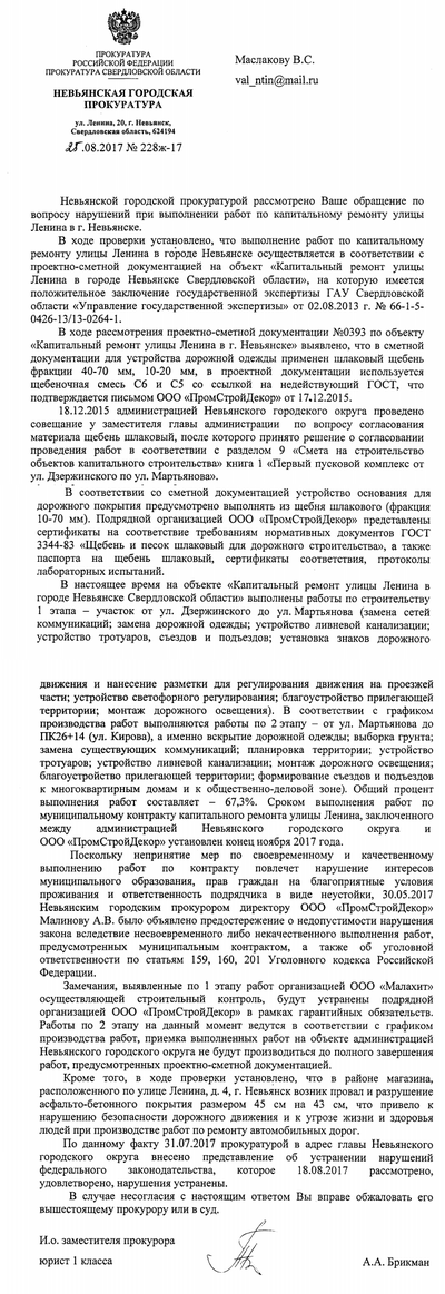 А раз так, почему бы не помочь Свердловской прокуратуре проверить требования к качеству проводимого ремонта. Тем более, что Тем более, что заплатили за него 248 167 560,00 бюджетных денег.