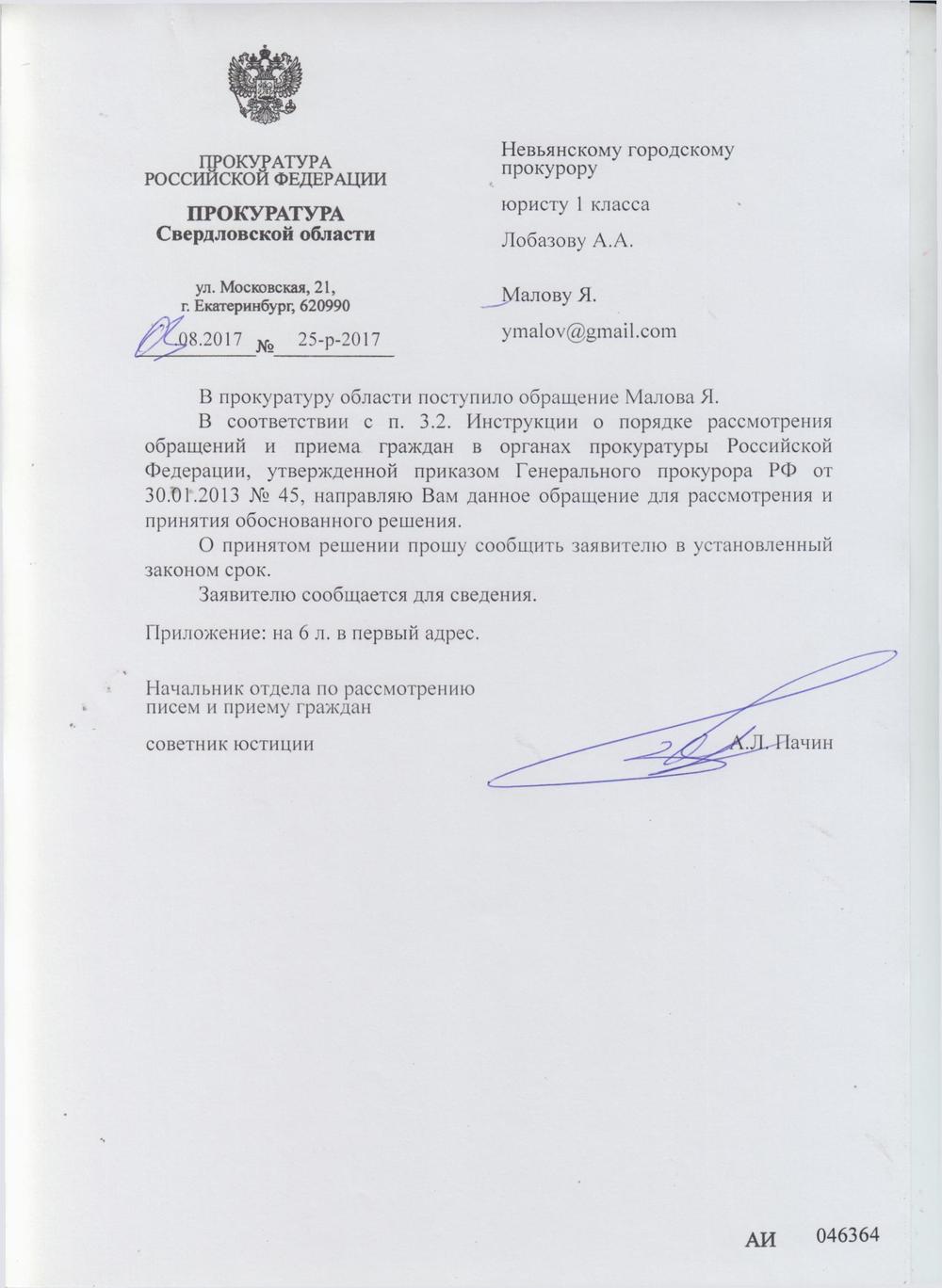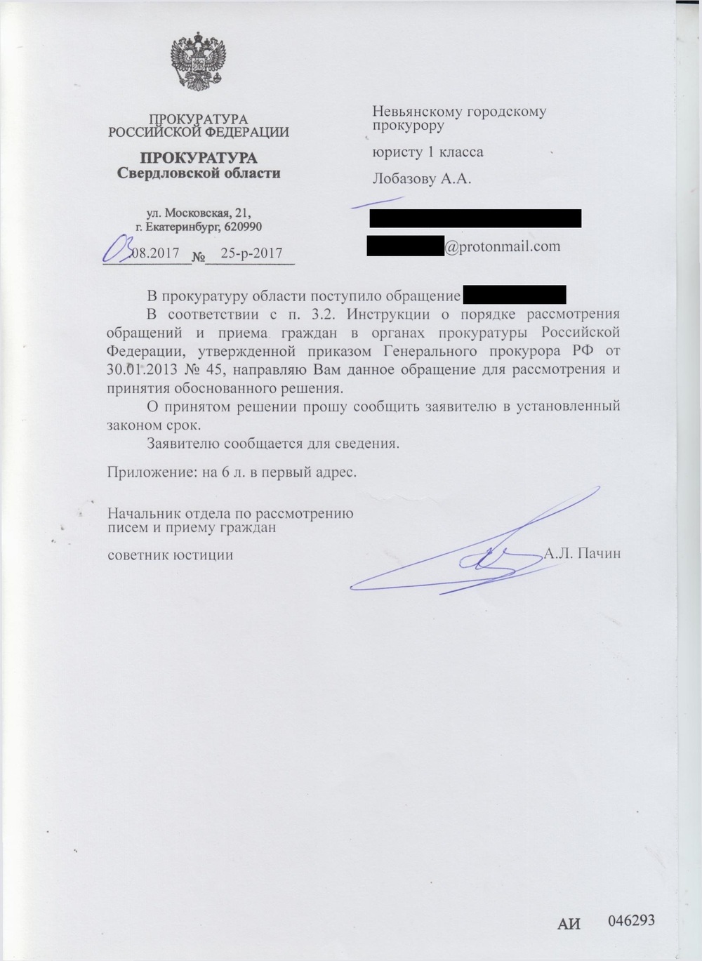 3. Переходим на сайт Прокуратуры Свердловской области и выбираем "Невьянская городская прокуратура" или "аппарат прокуратуры области" (что предпочтительнее, пусть лучше Ваше обращение перешлют оттуда), либо отправляем всё через сайт Генеральной прокуратуры.