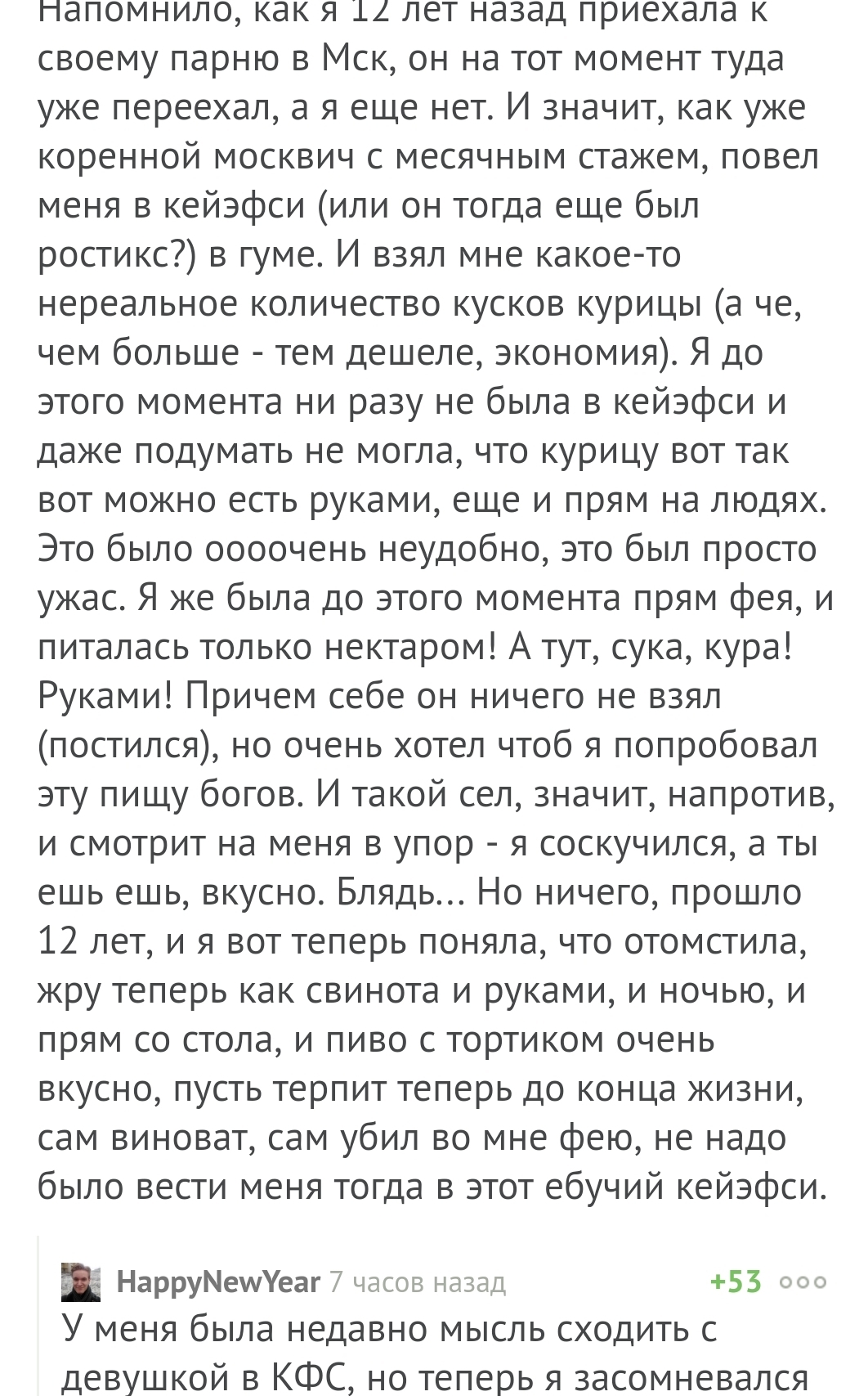 2326 kirvasy Отношения Проверка на годность 7 лет назад #comment_126791500 Еда Брак (супружество) Комментарии на Пикабу KFC Скриншот