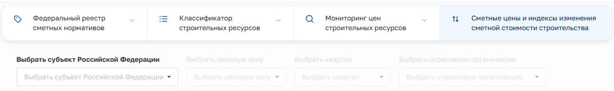 Для этого выбираем "Сметные цены и индексы изменения сметной стоимости строительства", выбираем свой регион, ценовую зону и временной отрезок (поквартально).
