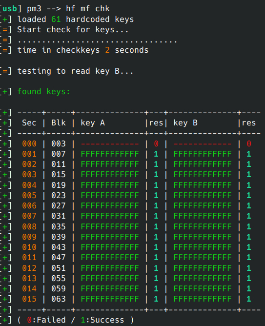 В моем случае все ключи стандартные, кроме 0 и 14 сектора. Значит можно попробовать атаку nested.
