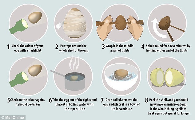 Потом трубки вынимают и заливают в отверстия желток и яйца довариваются вместе с желтком.