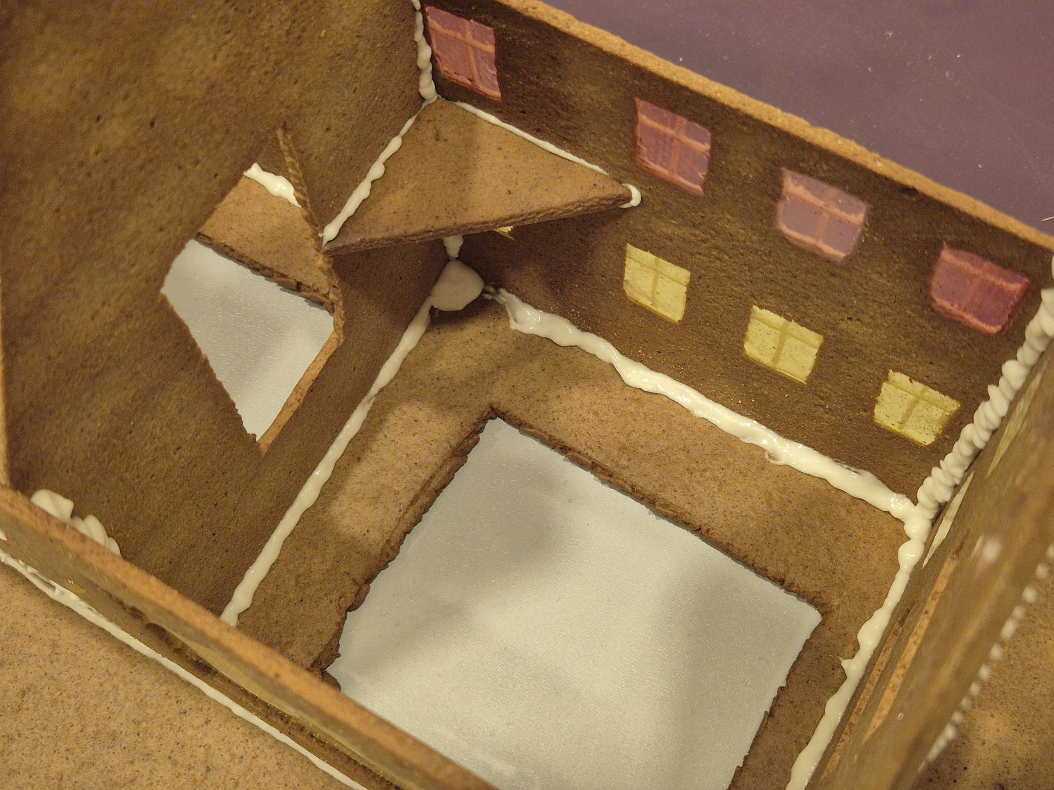 Уффф. Самый сложный этап позади и мы еще ничего не сломали. Дальше пойдет проще. Дом после установки крыши и высыхания клея сразу обретает десятикратную прочность по сравнению с исходными деталями. Сопромат однако! :). Обратите внимание на технологические отверстия. Они нужны для того, чтобы проходил свет. Если такие отверстия очень большие, то я их "застекляю" леденцом, он придает жесткость.