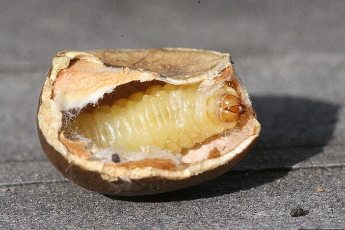 Из семечки выбирается обыкновенная серенькая моль. Для нее природа питания не предусмотрела, поэтому у повзрослевшего чешуекрылого остаток жизни пролетит незаметно. Насекомое найдёт партнера, отложит яйца внутрь цветков себастьянии и отправится на покой уже через пару дней после совершеннолетия. источник