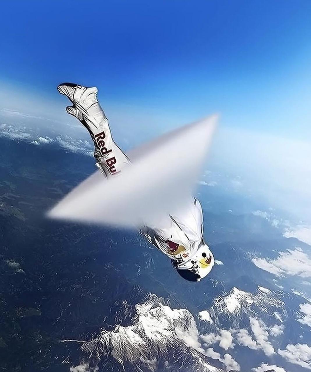 В 2012 году австрийский скайдайвер Феликс Баумгартнер первым преодолел звуковой барьер без двигателя: он прыгнул со стратостата с высоты 39 км и в свободном падении разогнался до 1357,6 км/ч.