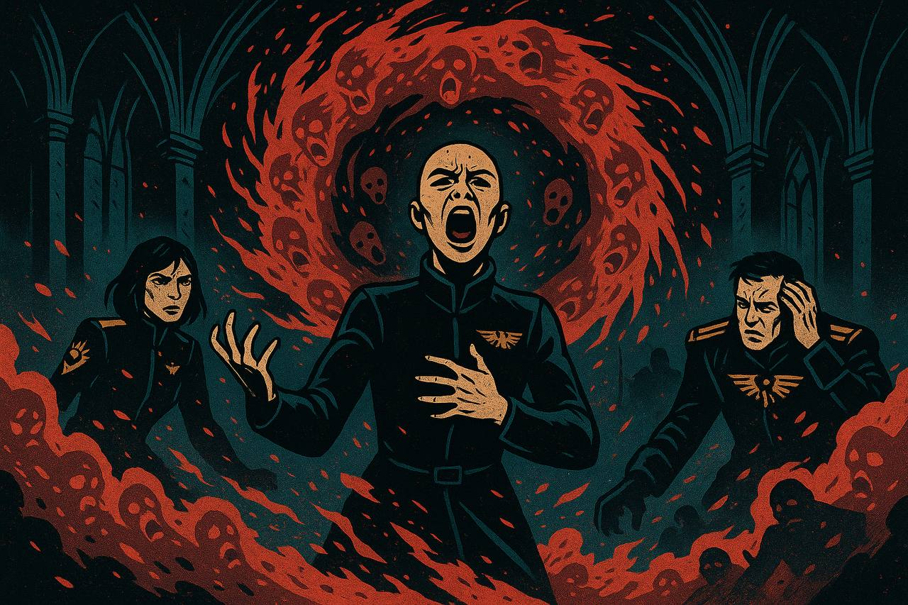 Голоса. Тысячи и тысячи их пели на незнакомом, сводящем с ума языке, доступном только тем, кто прибыл из имматериума. Они заполняли собой не только разум, но и, казалось, пространство вокруг, делая его вязким, липким, пристающим к телу, словно гнилая слизь.