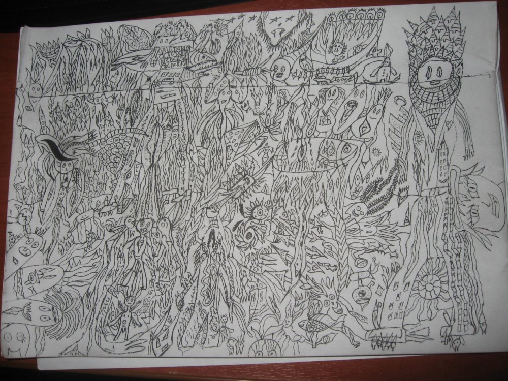 чувак, ты наверное уже забыл про этот пост, а рисунок выкинул давно... может быть ты тут уже даже и не сидишь, но я все равно напишу это: рисунок великолепен, я залип надолго. спасибо за такое творение