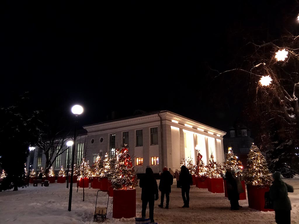 Рядом с библиотекой аллея елочек. По одной на каждый муниципальный округ. С соответствующими тематическо-краеведческими украшениями. Интересненько. Особенно если все лето и осень катался по области и проникался красотами и хтонью глубинки.