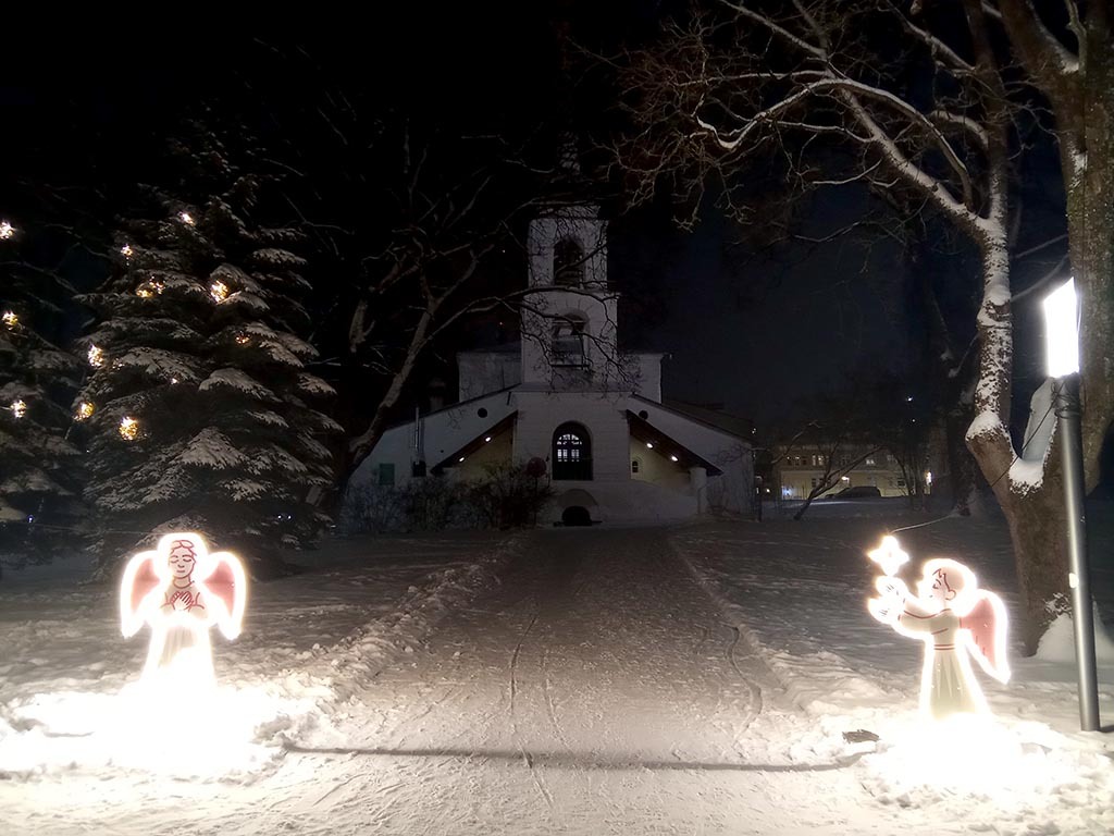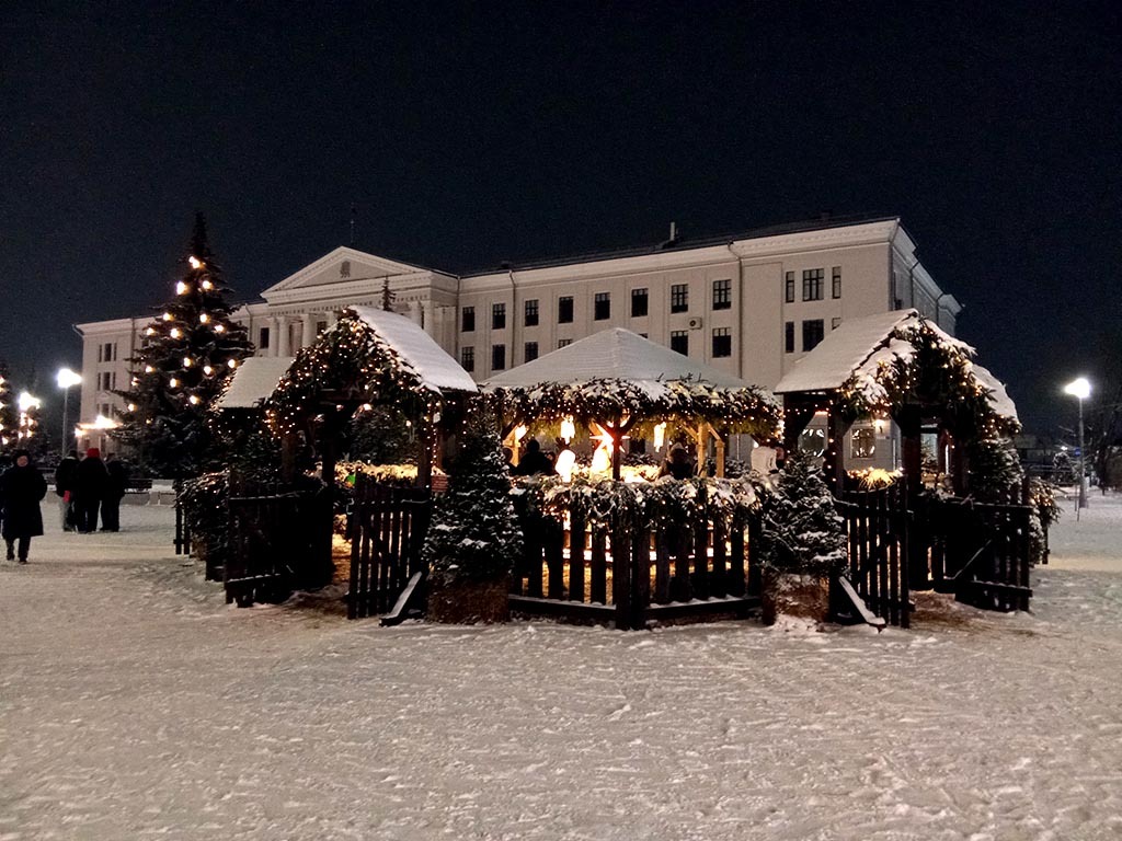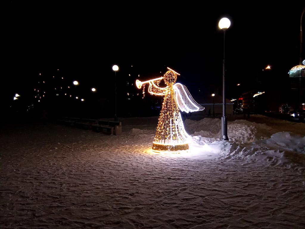 Псков, оказывается, теперь город Рождества. Везде ангелы и библейская тематика. Не скажу, что это ужас-ужас. Псков издревле - город церквей и башен. Так что рождественская тематика выглядит, как минимум, туристичненько. Вот на фото одна из центральных площадей города.