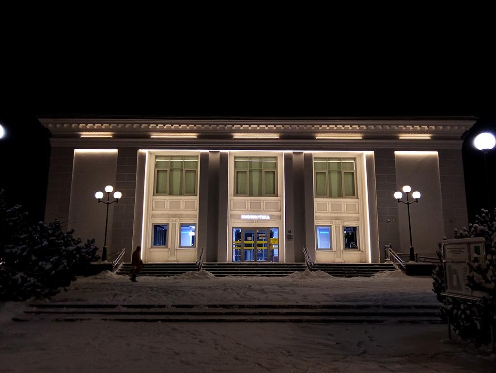 Если кто из уехавших из Пскова не знает, то вот в такое превратили образчик соцреализма - бывший кинотеатр "Октябрь". Теперь это библиотека. В Пскове кстати довольно много библиотек. Не знаю, о чем это говорит.