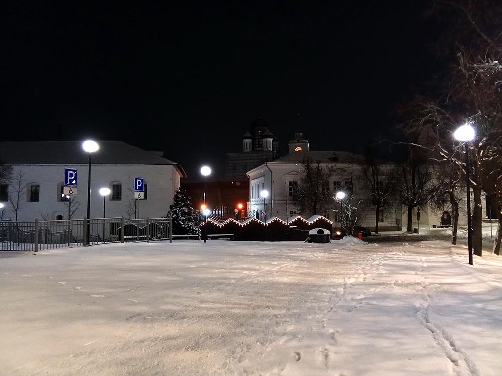 Обычные улочки Старого Пскова. Тут тихо, горят фонари, снежок сыпет себе к неудовольствию городских снегоуборщиков.