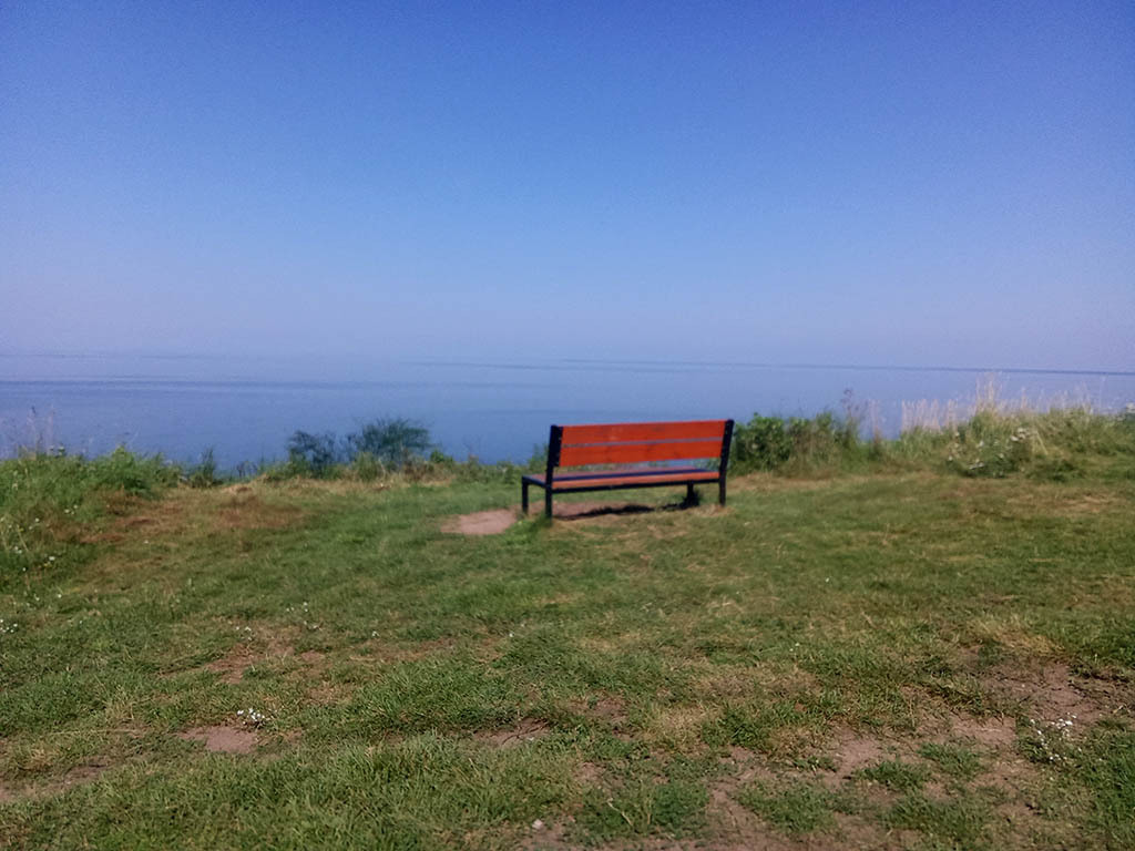 Тут же невероятно очаровывающий пейзаж: скамеечка над обрывом и бескрайняя гладь озера. Через тридцать километров - эстонский берег. Может, кстати, включиться буржуйский роуминг.