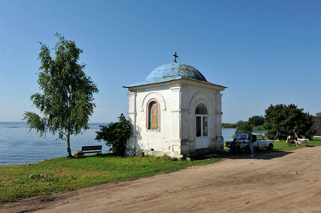 Проехав минут пять по лесной речке, выплываем на бескрайний простор Псковского озера, которое вместе с Чудским часто называют Псковским морем. И есть за что. И же виден остров Талабск, с рыбацкой деревушкой и церковью. Официально он назван островом им. Залита в честь красного комиссара Яна Залита, которого белогвардейцы (а по некоторым слухам и местные жители) утопили в озере за попытку установить советскую власть. Сейчас остров называют и так и так, в зависимости от идеологических предпочтений.