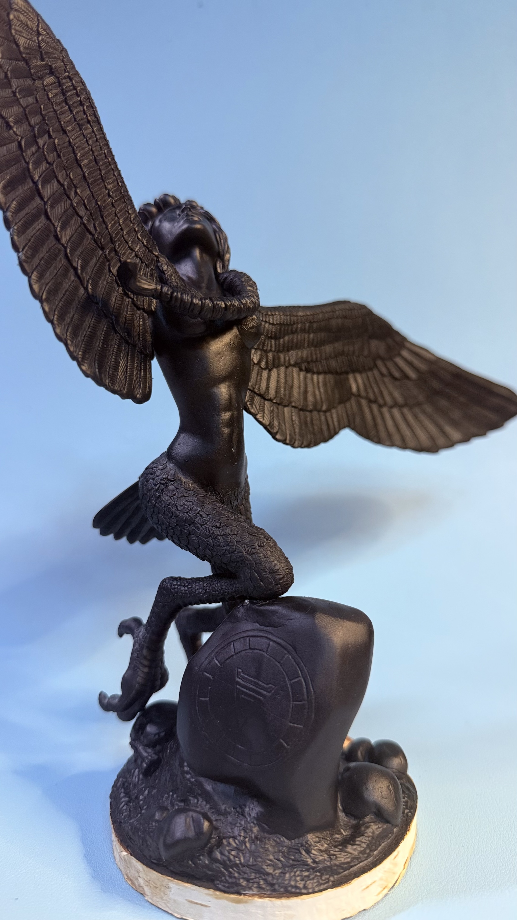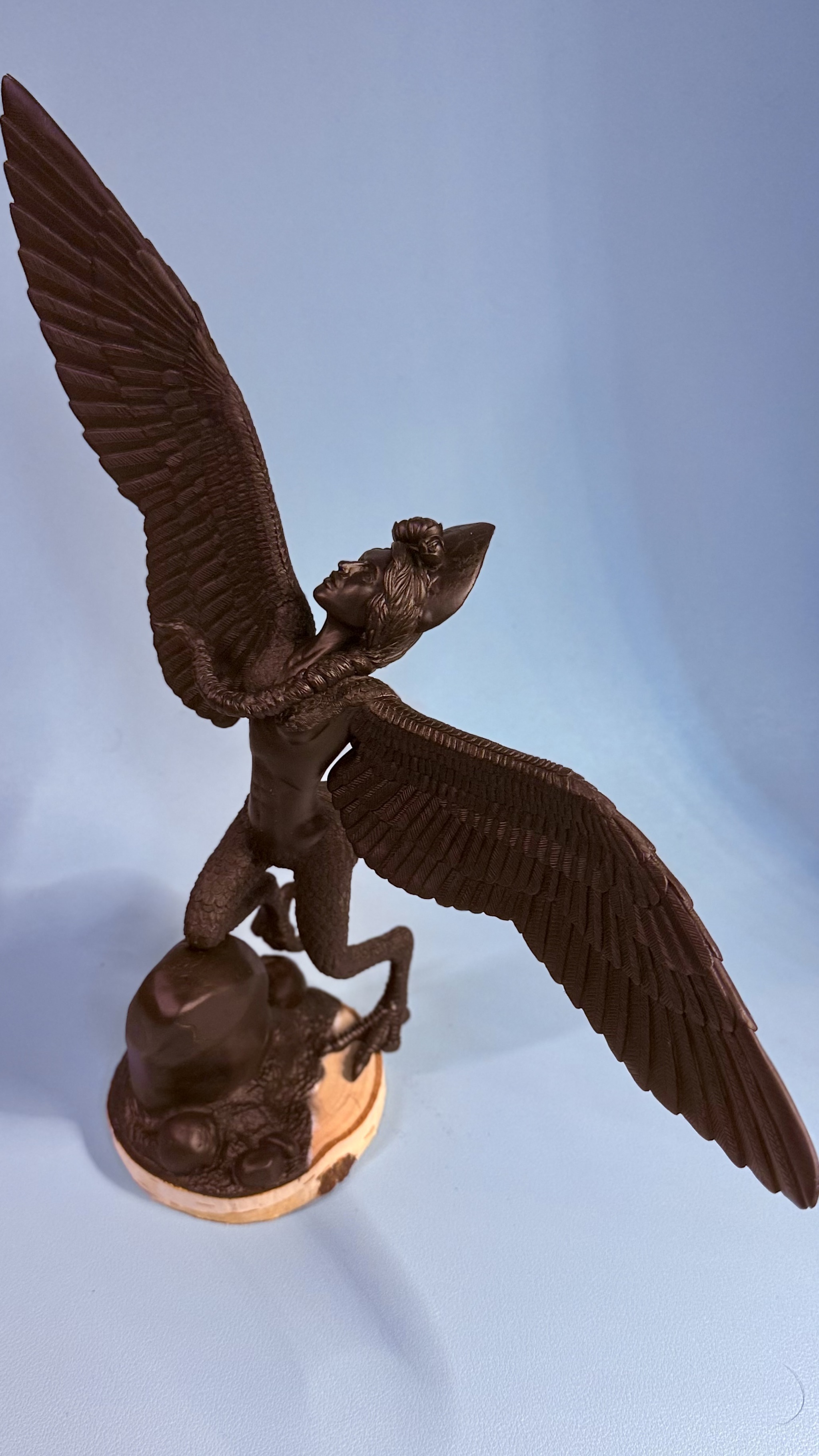Закончила лепку птички, материал-полимерная глина, сверху грунтовка черная, основание спил березы. Осталось покрасить.