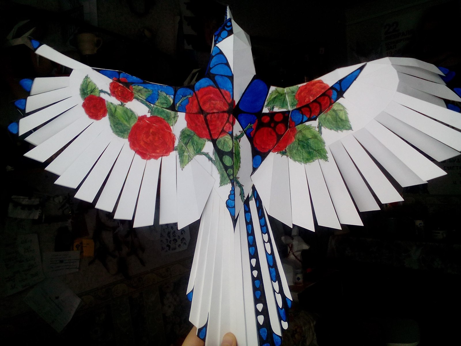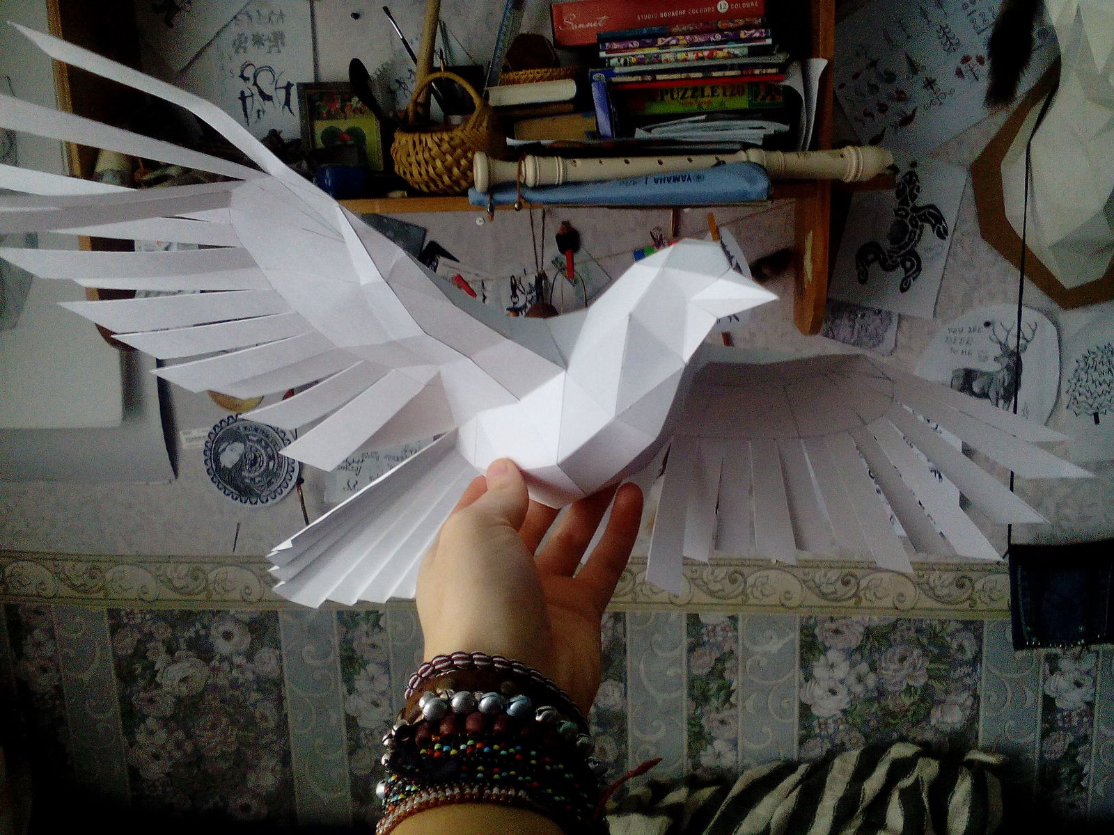 А потом моей подруге стало скучно, и она машинально под разговор начала покрывать птицу партаками. Вот так: