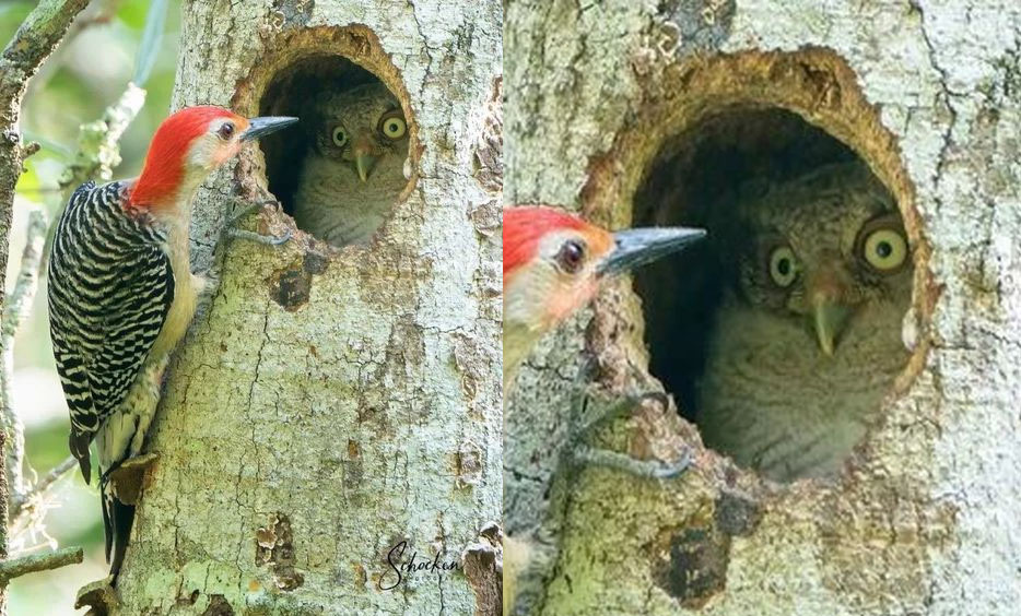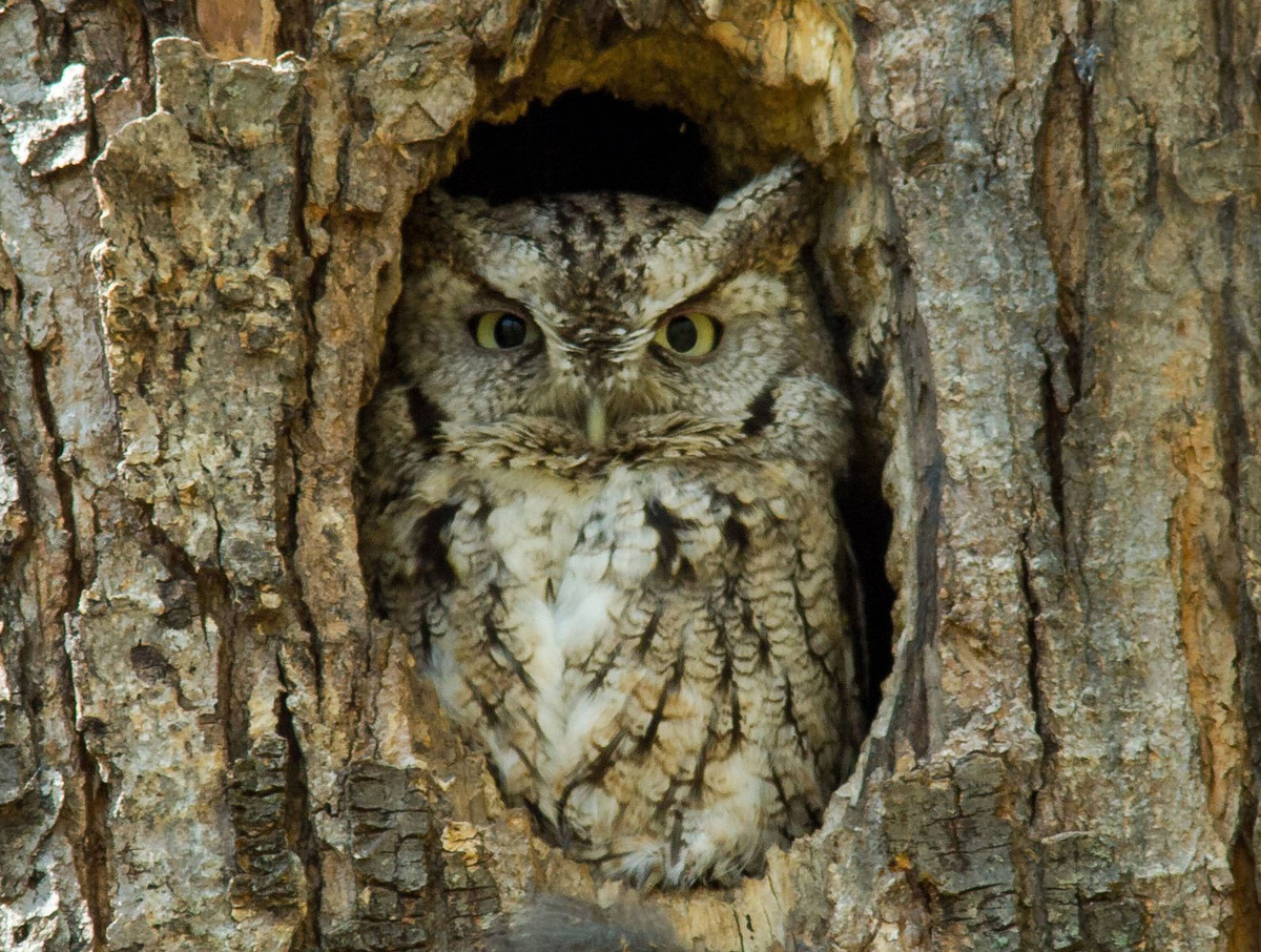 Когда дятел стучит по дереву, звук разлетается на многие метры вокруг. А насколько неприятно сове, с ее чувствительными ушками, которая в этот момент находится внутри ствола, где акустика максимально давит на перепонки!