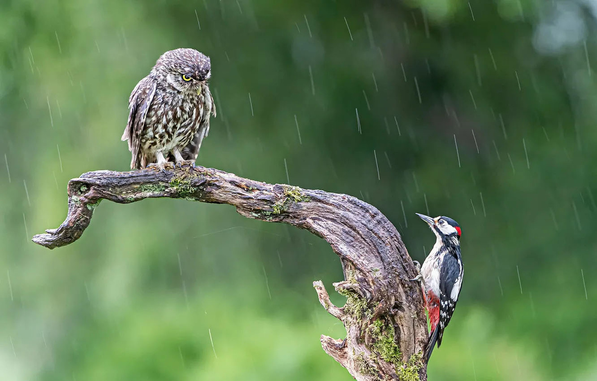 Но вот за стеной вдруг начинает стучать молоток, а то и похуже – включается перфоратор. В адрес соседа тут же полетят нелицеприятные высказывания, ведь нет ничего хуже той головной боли, когда просыпаешься от шума посреди мирного сна. Да, совы терпеть не могут дятлов. Вместо тысячи слов – сердитый взгляд ждет стучащую по стволу дерева птицу в яркой шапочке.
