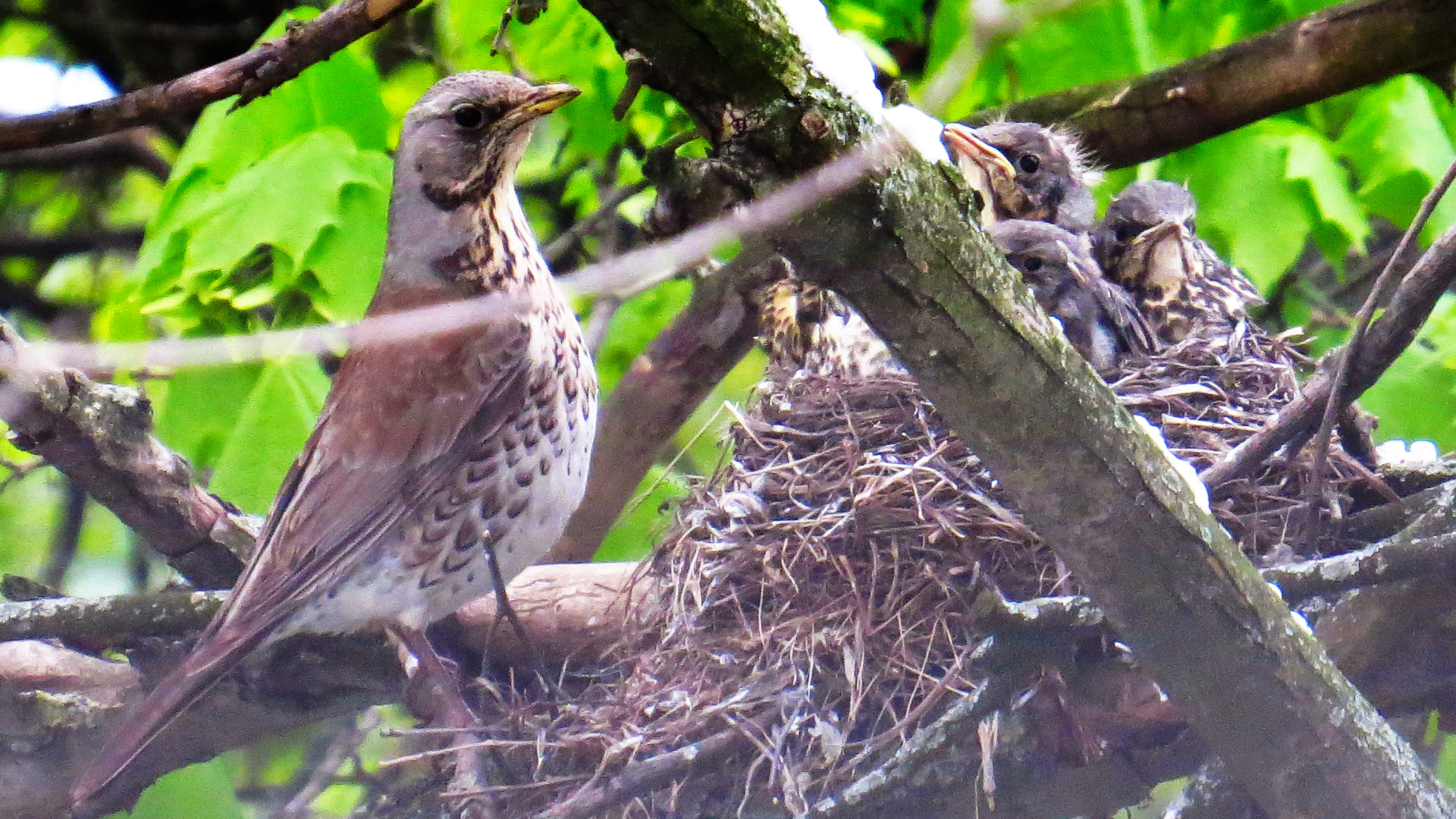 Тоже момент съемки гнезда рябинников 10 мая 2024. Снимал их на видеокамеру Panasonic HC-V710 и фотик Canon PowerShot SX50 HS.
