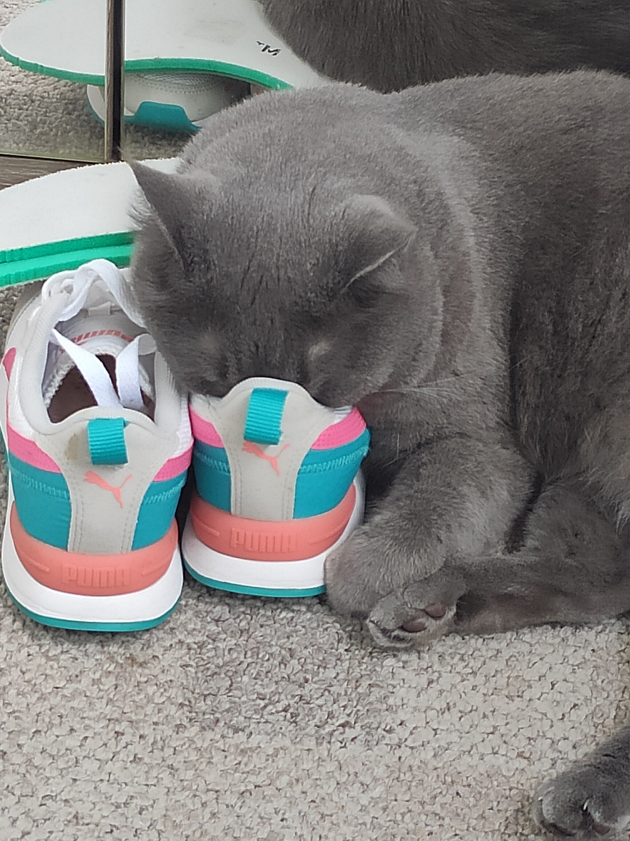 17 AndoMitich 1 год назад Пума в пуме Если вы постирали кроссовки, то заставьте котю, который бестолку шляется по квартире, их сушить! [моё] Кот Кроссовки Милота Ещё 0