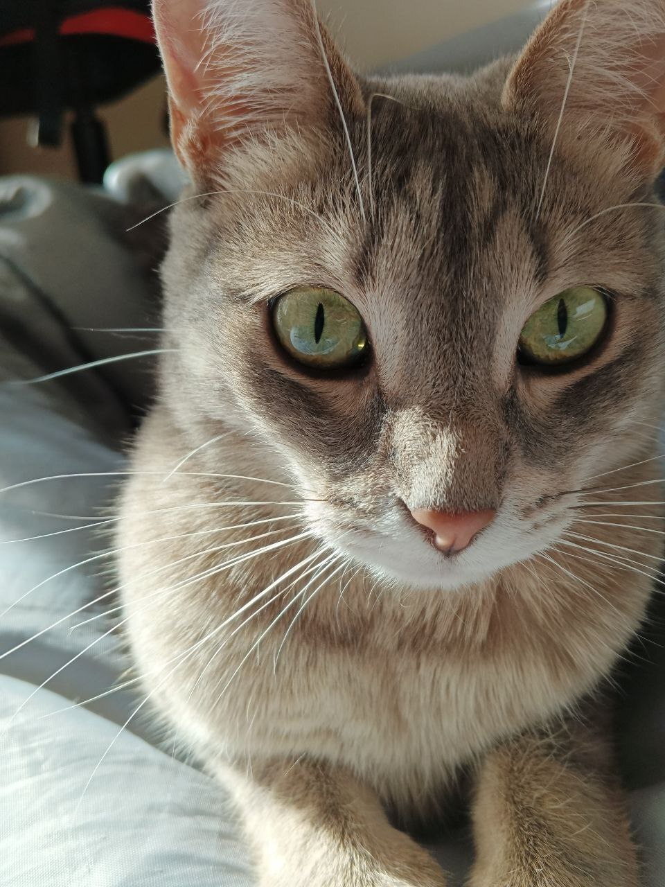 У моей кошки огромные изумрудные глаза.