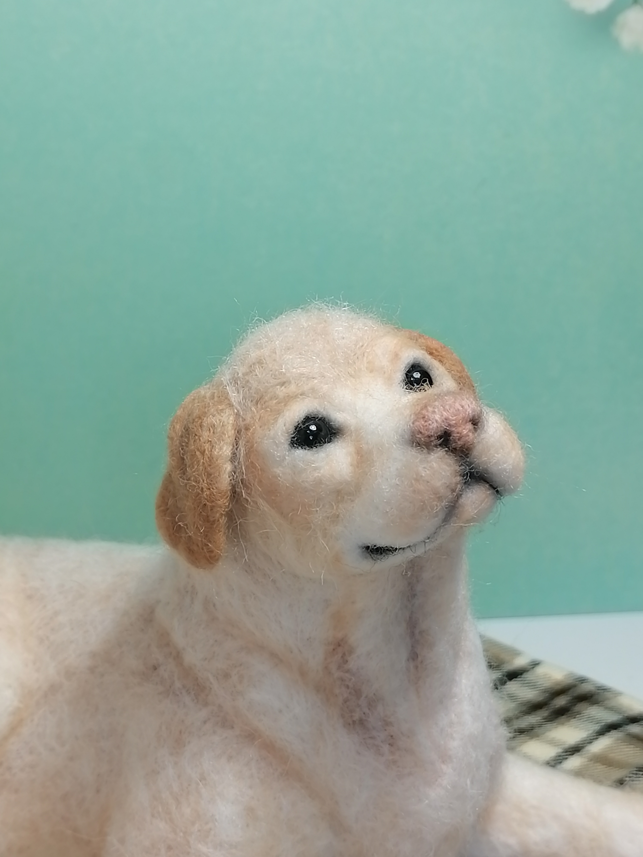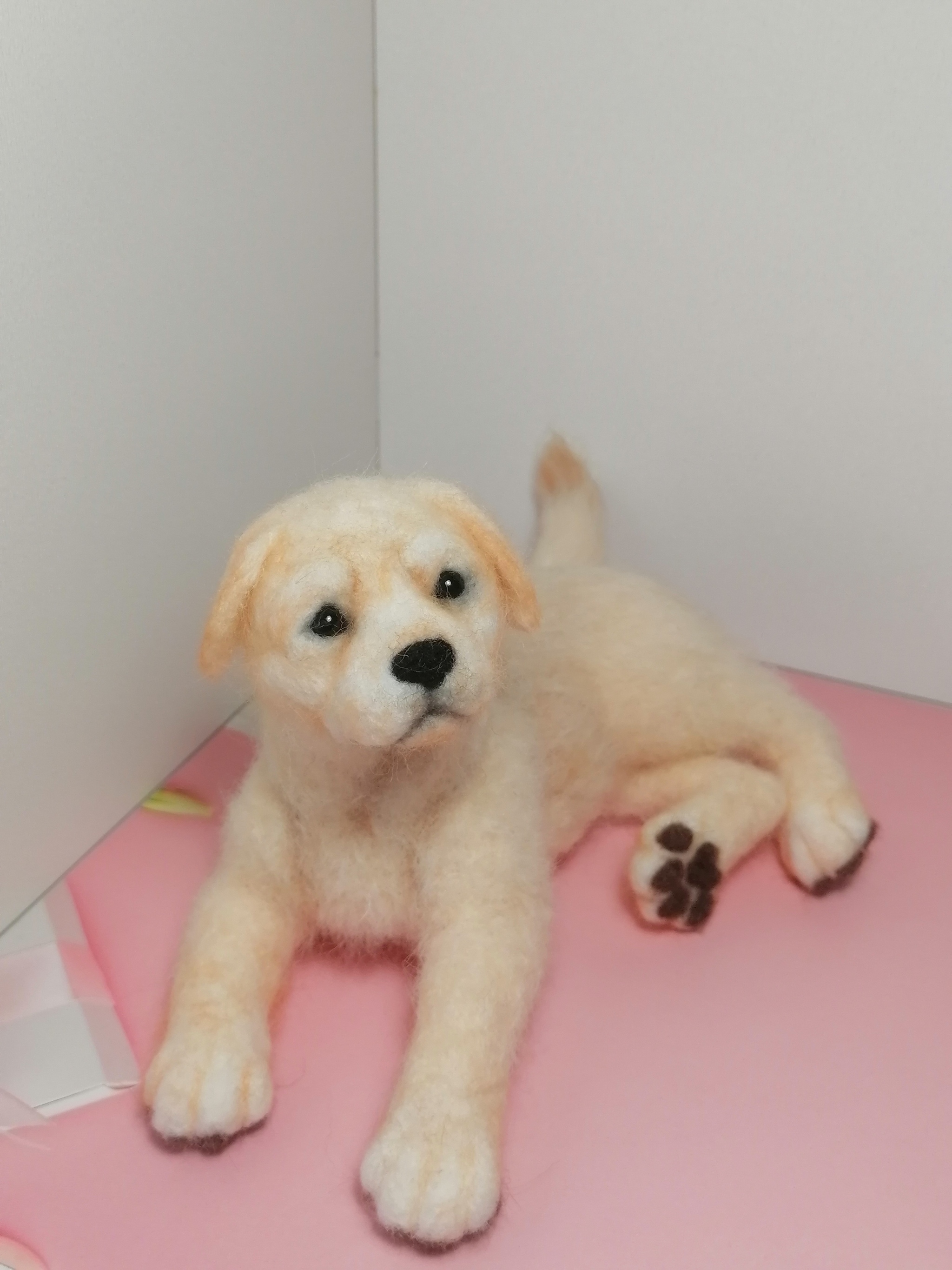 С месяц назад у меня заказали палевого лабрадора из шерсти, но результат не удовлетворил клиента - собачка получилась слишком взрослой на вид, когда хотелось щенка. Пришлось делать новую игрушку...