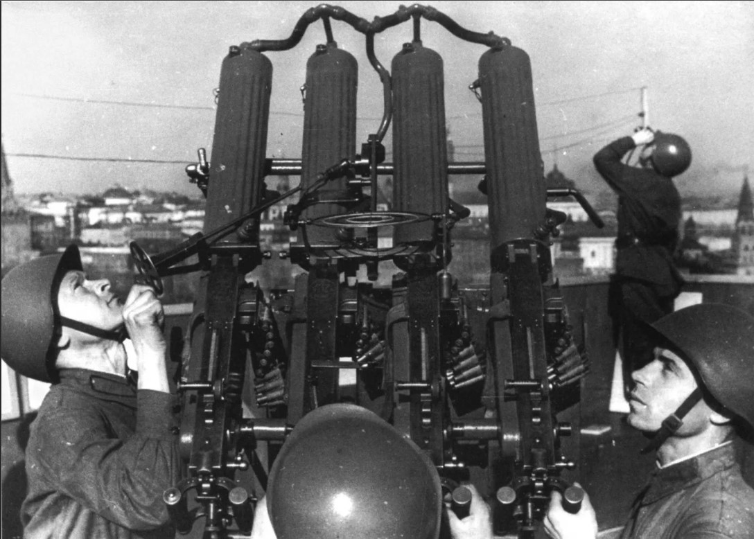 Впрочем, время шло, разразилась Вторая Мировая, страны воевали кто чем мог. Из любопытных решений можно упомянуть счетверённые установки пулемётов Максима.