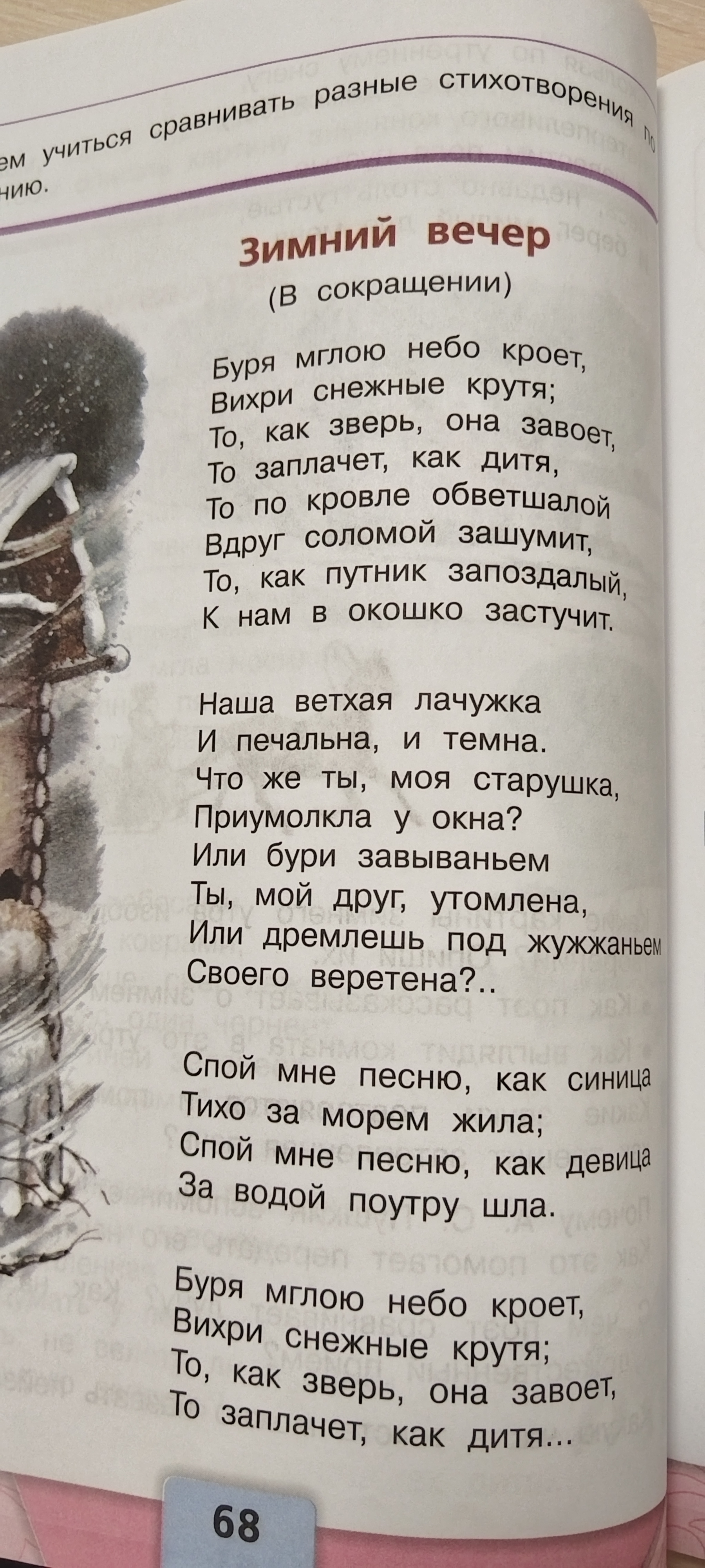 И жена говорит, мол это отрывок - нет, говорит, про кружку и старушку, которой Александр Сергеевич предлагал выпить с горя.