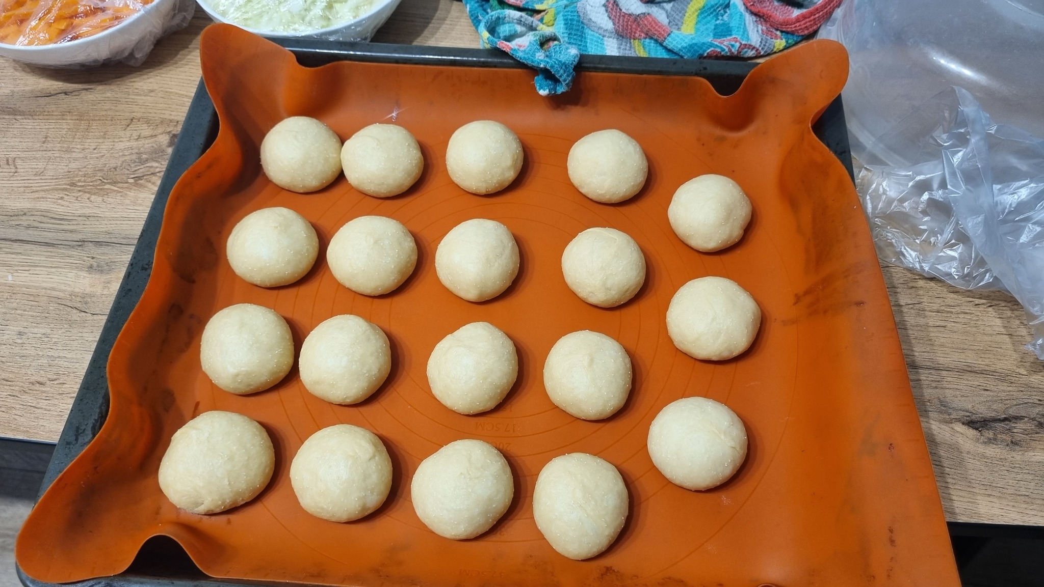 Накрываем их полотенцем или пленкой. Пока будем катать колобков, заготовки не должны обветриться.