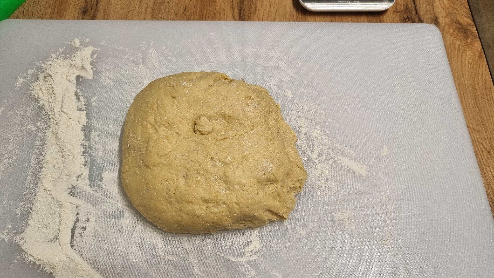 (не смотрите, что у меня много муки на доске, я просто высыпал остатки из пакета. Фактически использоваться она не будет.)