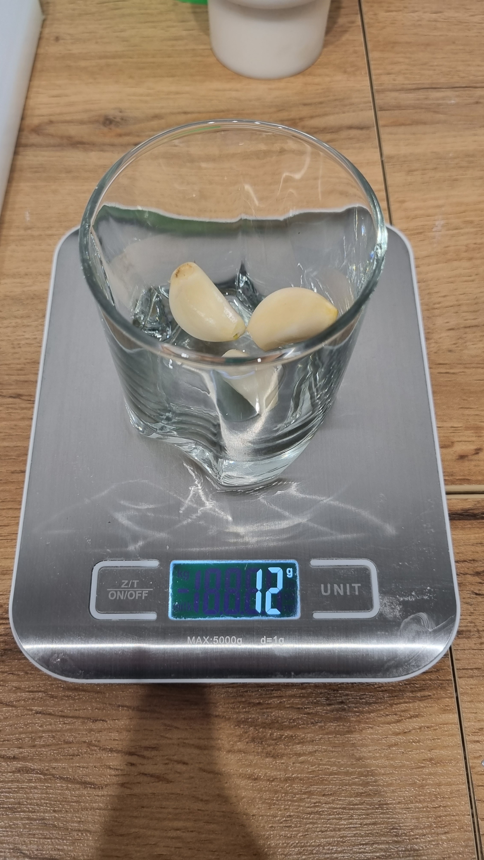 Чеснок -12 грамм - раздавили на чеснокодавке или в ступке.