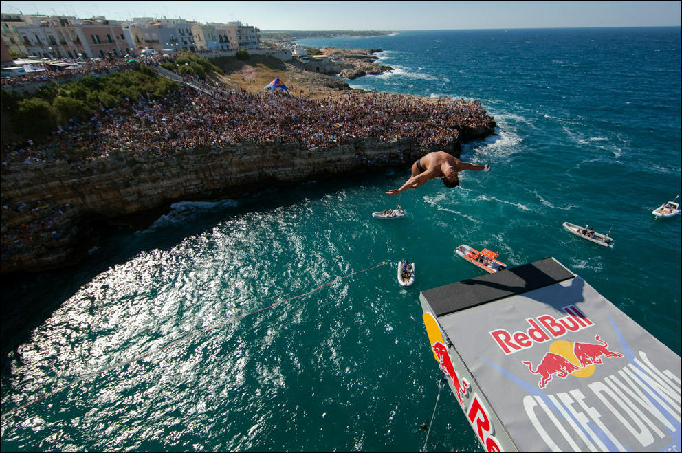Нужно, чтобы кто-то с чего-то прыгнул в жидкость.