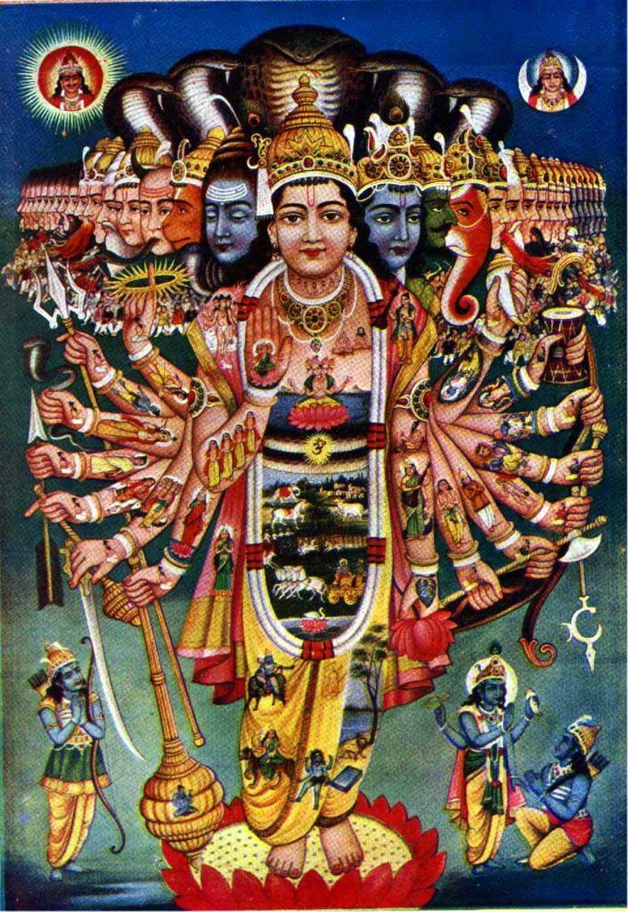 Индуистская картина окружающего мира представляется как театр, театр одного актера, в котором один божественный актер создает этот мир путем самопожертвования (атма - яджна) и играет одновременно все роли.