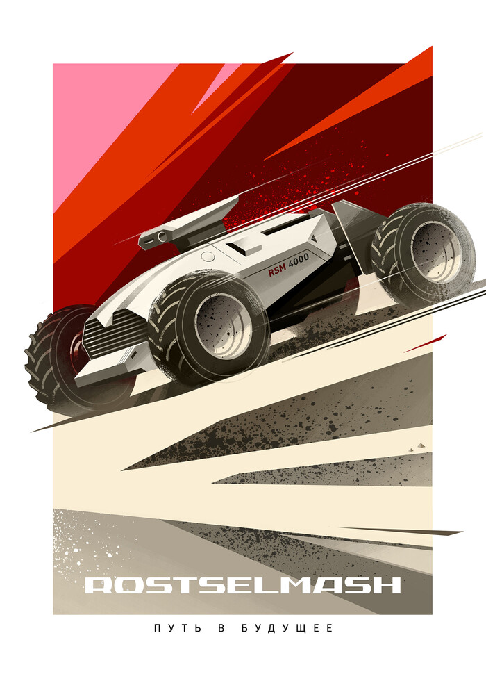 Плакат для фестиваля Время Вперед, который организует компания Ростсельмаш. Путь в будущее, на плакате изображен беспилотный трактор. Финальный результат и немного процесса)