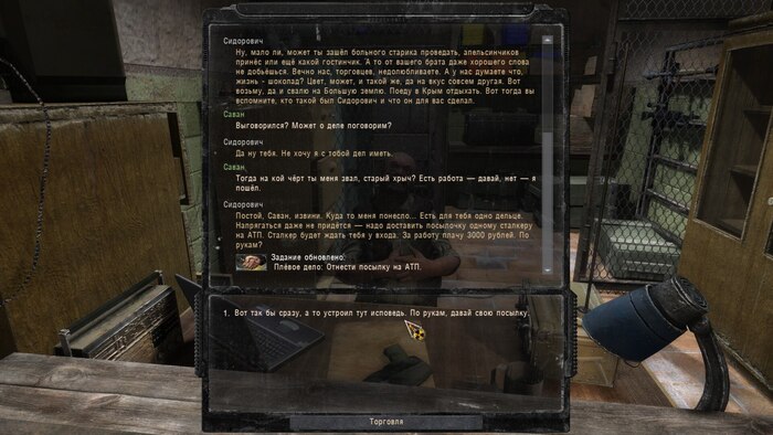 В начале я смирился с тупым персонажем. Я поржал, увидев Сидоровича, поднявшего свое гузно со стула. Я смутился, узнав о каком-то дедке, который живет со сталкерами... Но медлительность напарника, постоянный спаун бандитов, просто неиграбельный бар, жутчайший дисбаланс в артефактах, к тому же после первой локации уже нет никакого смысла играть ради прокачки, шизофреничный и при этом неинтересный сюжет без ярких персонажей - все это отбило у меня желание далее играть в подобную поделку, так как чем больше я в это играю, тем менее мне интересна эта игра.