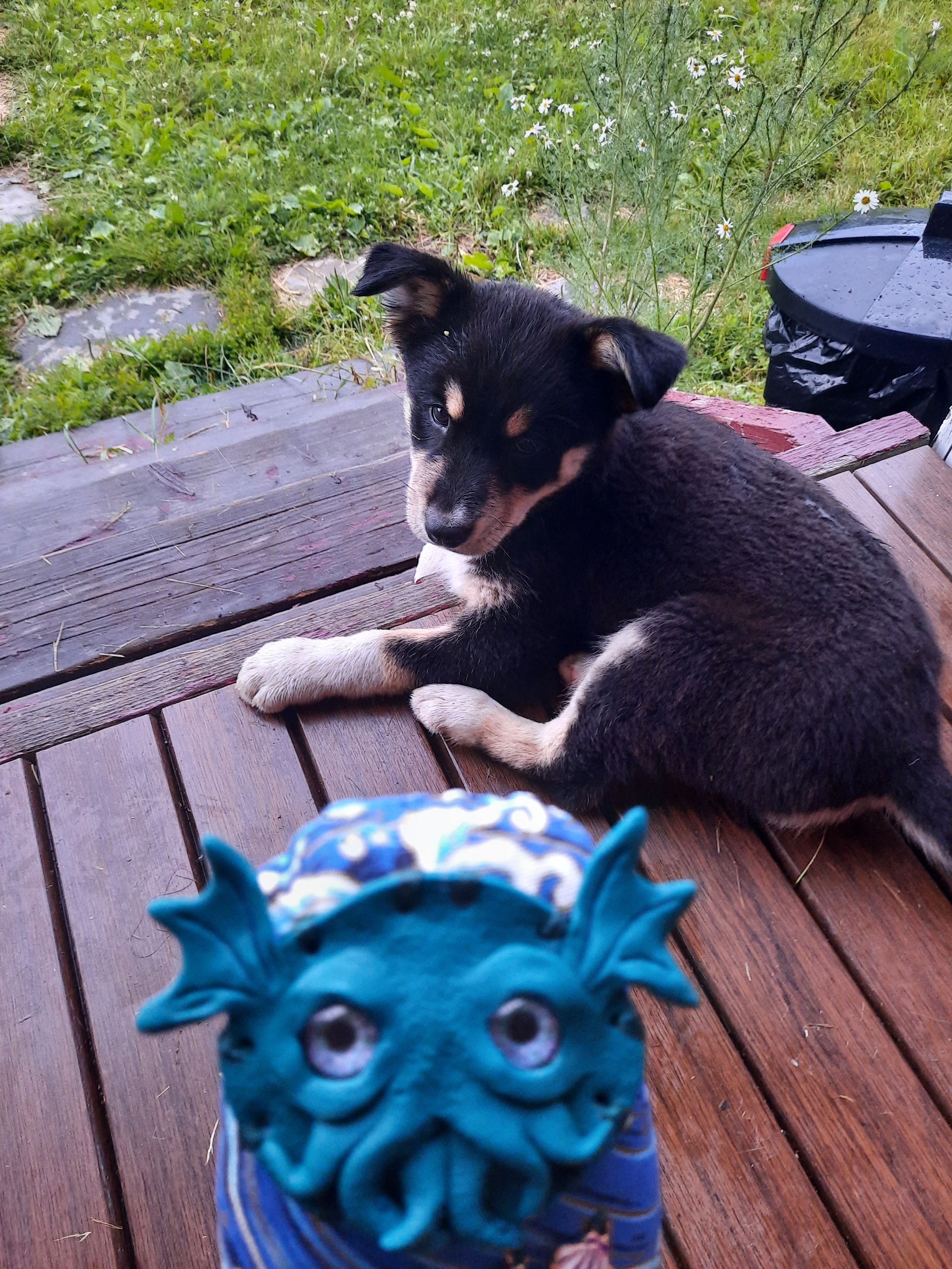 Позже он вернулся в дом и там его ждало много интересных земных животных. Смертные рабы сказали, что этих животных называют собаками. Эти собаки оказались очень мягкими и пушистыми, Ктулху они понравились)