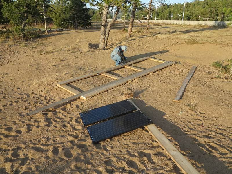 К закату рама была закончена, а солнечные батареи нехитрым способом закреплены на раме. Пришло время ужина и сна. Тем более, что в Москве уже около 2 ночи. Организм упорно не хотел перестраиваться на местное время.