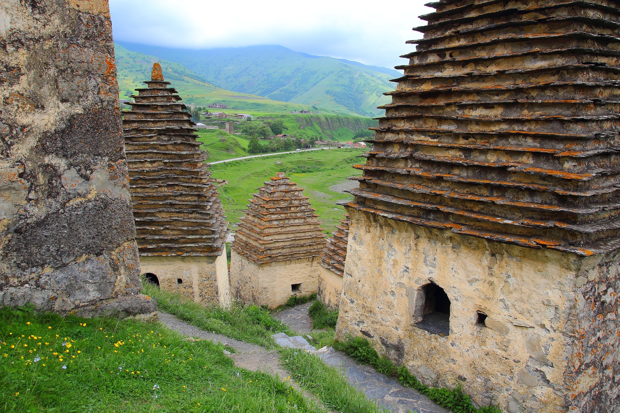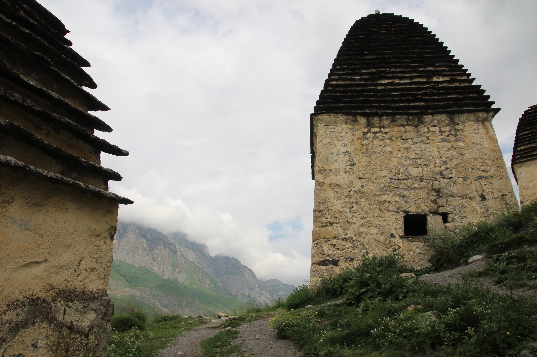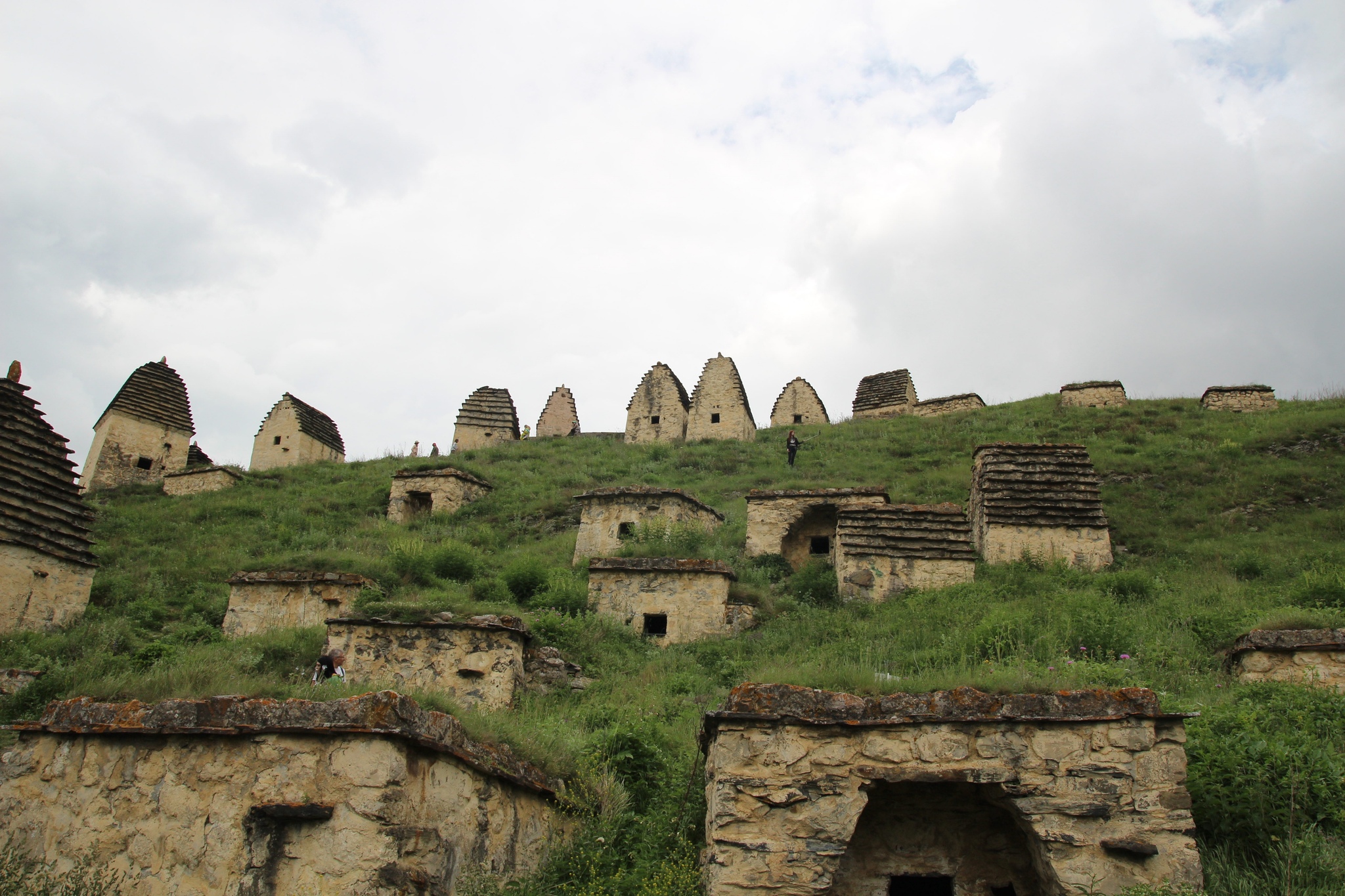 Поднявшись на вершину серпантина, внизу я увидел квадратные небольшие строения напоминавшие по виду сванские башенки-это был город мертвых..