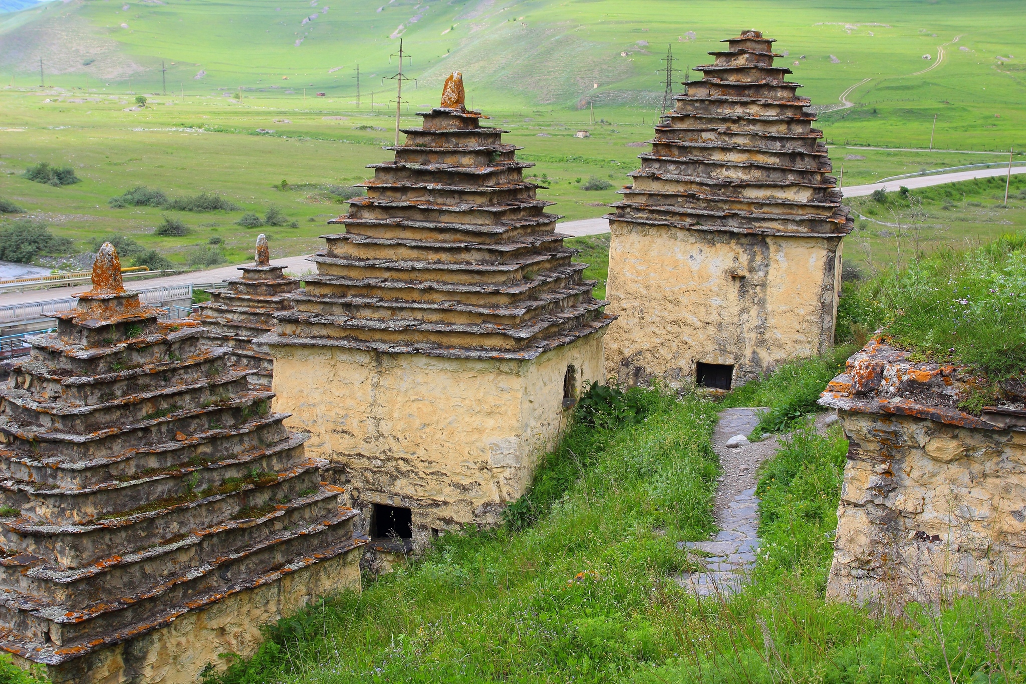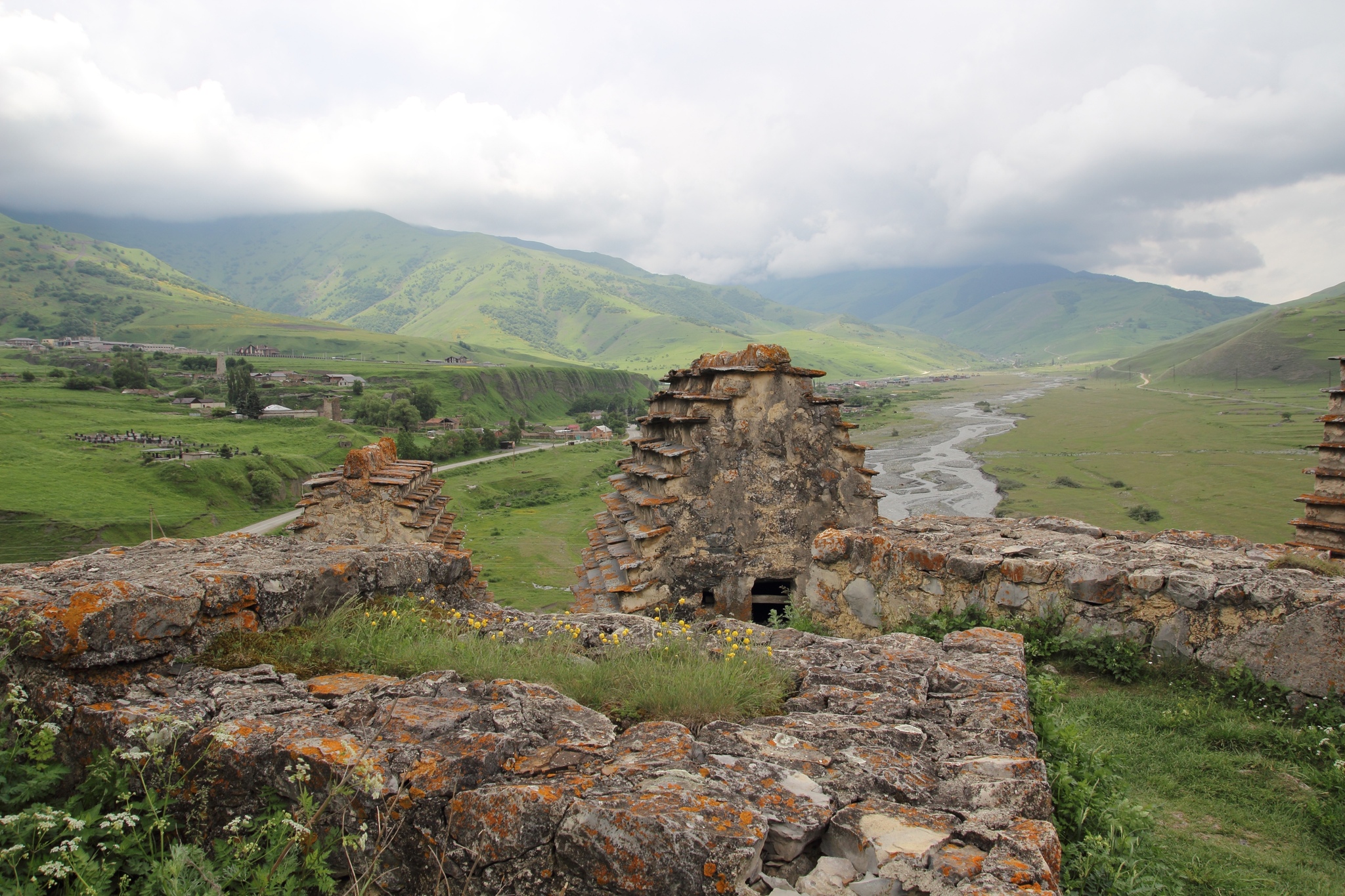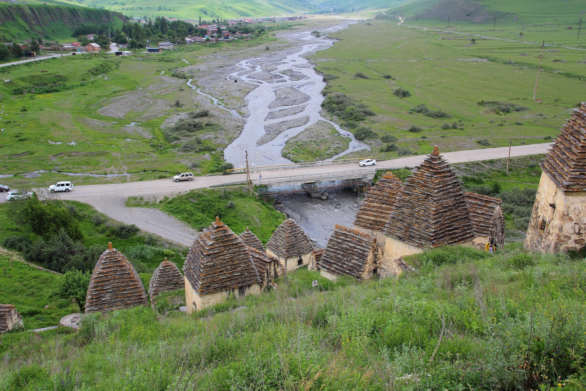 Поднявшись на вершину серпантина, внизу я увидел квадратные небольшие строения напоминавшие по виду сванские башенки-это был город мертвых..