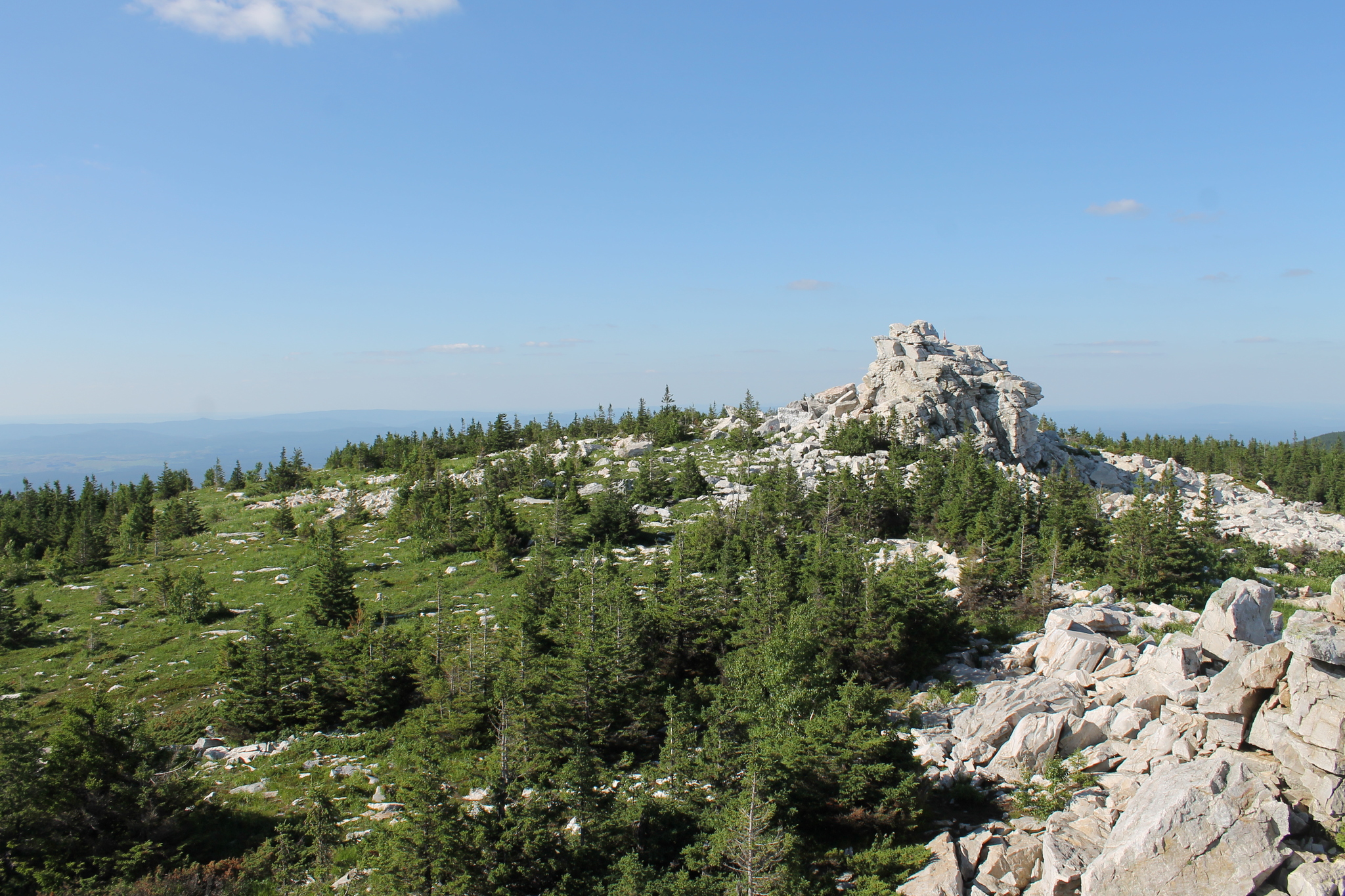Взобравшись на макушку, встречаем густолесье хвойных древесных пород, практически незатронутых хозяйственной деятельностью, а также вкрапления голубичной тундры, что является уникальным для данного места! Довольно непривычно её видеть здесь, тем более осознавая, что мы на Южном Урале...
