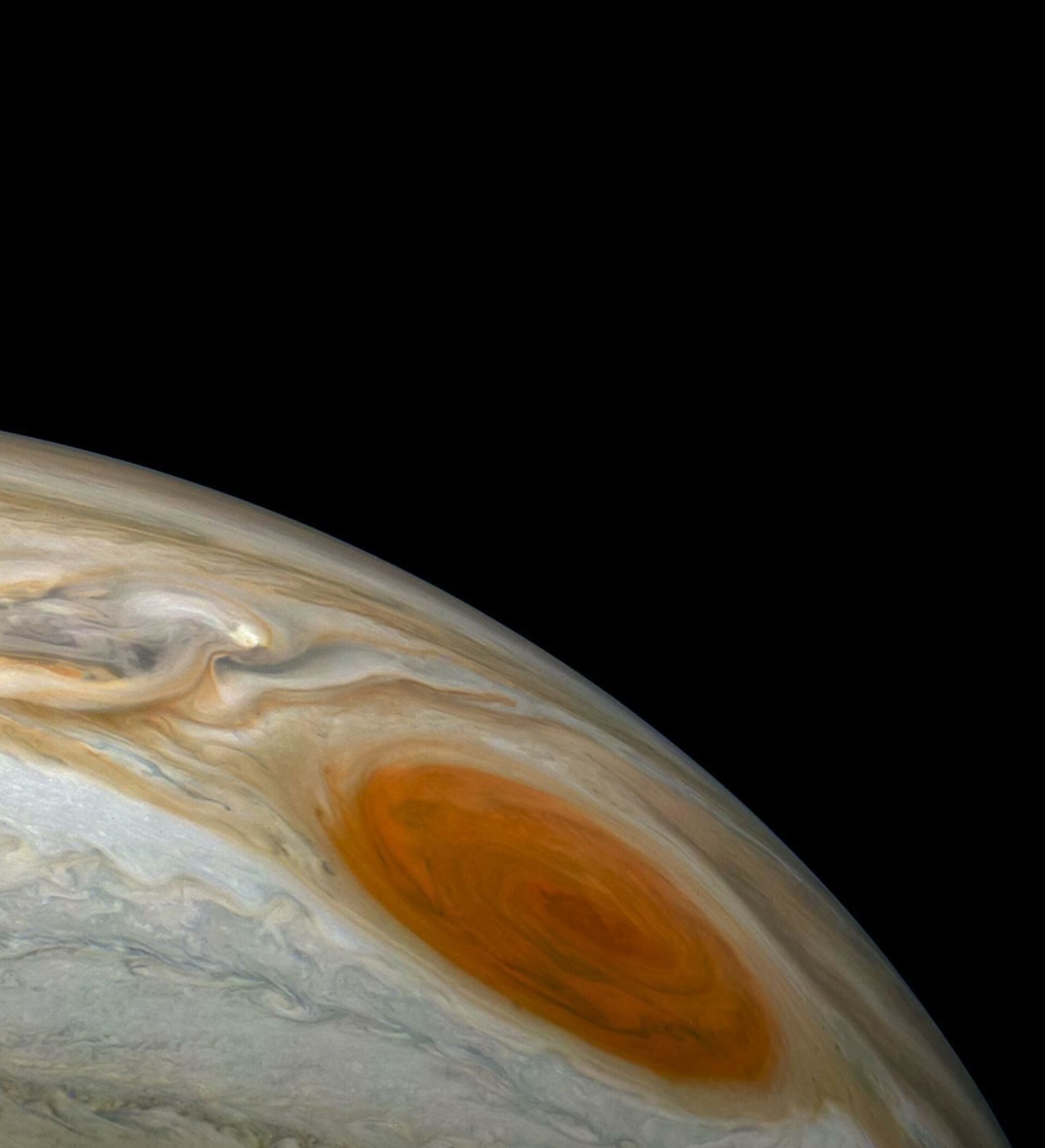 Атмосферные явления Юпитера, такие как штормы, молнии и полярные сияния, превосходят земные по масштабу. Знаменито Большое красное пятно — гигантский шторм, известный с XIX века (возможно, с XVII). Планета имеет более 95 спутников, первые четыре (Ио, Европа, Ганимед и Каллисто) открыты Галилеем в 1610 году. Исследования проводятся телескопами и аппаратами НАСА (Пионеры, Вояджеры, Галилео, Юнона и др.).