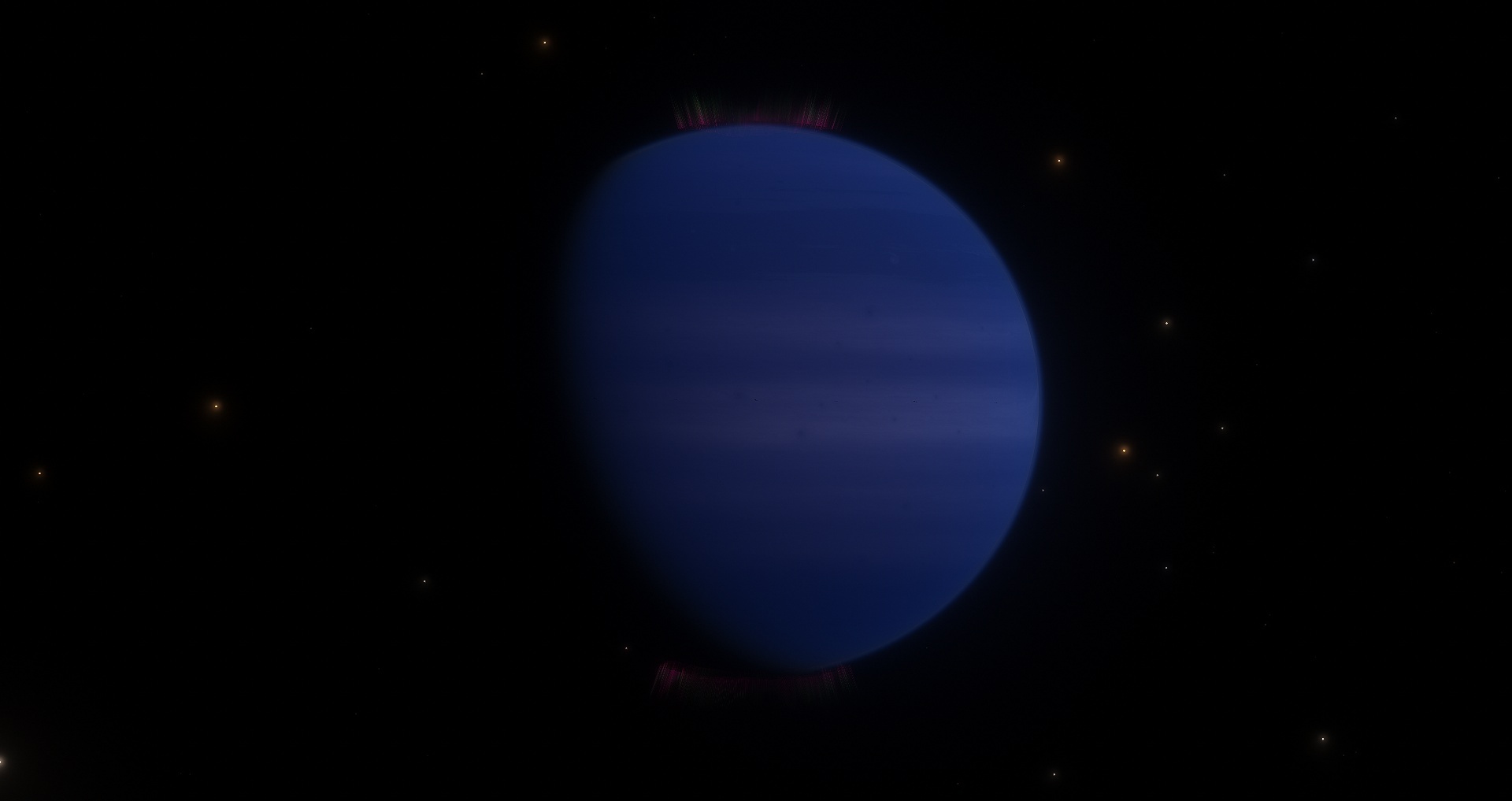 На планете царит ледяной холод из-за недостатка энергии от мёртвых звёзд. Атмосфера, вероятно, состоит в основном из водорода и гелия, с примесями углеводородов, что может придавать ей глубокие синие и фиолетовые оттенки.