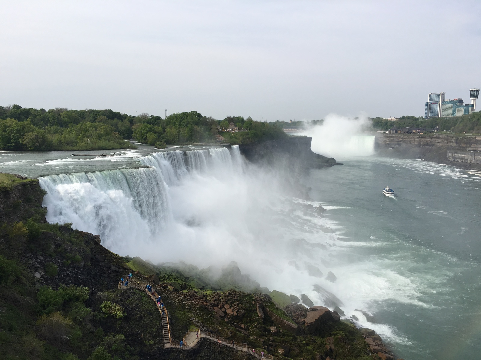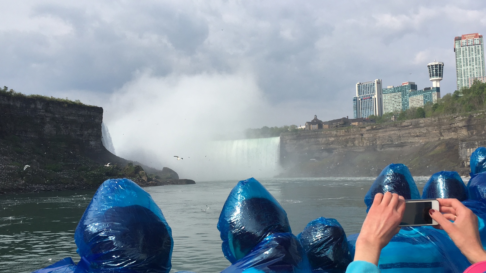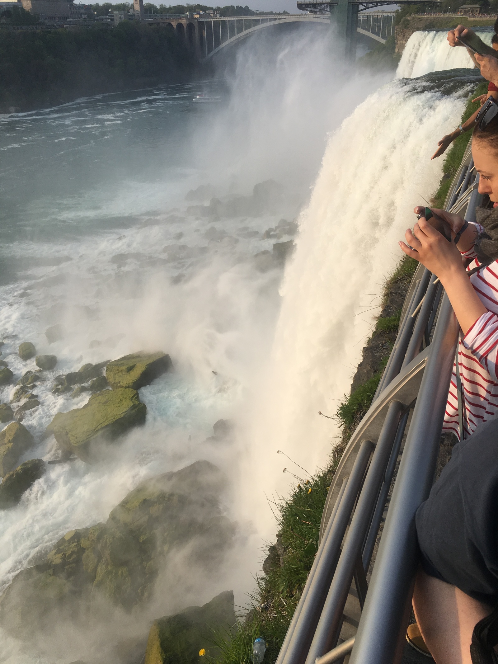 Всем доброго времени суток! Как и обещал пост про поездку в США. Сегодня про Ниагарский водопад. Это самый большой водопад в мире. 80% воды находится на территории Канады. Вид на него, соответственно лучше со стороны Канады. Хотя в конце будут фото со смотровой площадки и там будет его хорошо видно, жаль только не передать реальный его вид посредством фотографии...Поездка на Ниагарский водопад у нас заняла 6 часов. Экскурсия для русскоязычных, на русском языке с русским гидом. Занимает сутки. Помимо покупки магнитиков на месте и кучи разного барахла вы так же можете там в лавках купить настоящий кленовый не концентрированный кленовый сироп(его нужно потом каким то чудным образом разбавлять, потому что очень очень сладкий и называется - передай привет поджелудочной). Кстати гражданам США можно перейти мост, который соединяет США и Канаду и увидеть ниагару с другой стороны без получения каких либо других документов. Так же для тех кто желает можно купить билеты на катер(или хз как называется этот вид транспорта) и Вас так сказать доплывут в самое сердце водопада. Прямо под него. В итоге будете промокшие до нитки но безумно счастливые. Ощущения непередаваемые. Ощущаете на себе всю мощь природы. Там, внизу у водопада настолько влажно, настолько часто на Вас падают капли воды, что почти невозможно долго это созерцать. Глаза открыть трудно. Для особо одарённых есть даже услуга - полёт над Ниагарским водопадом на вертолёте...Там же, кстати неподалёку находится резервация индейцев, которые торгуют всем чем угодно и занимаются чем угодно не уплачивая при этом налог ни единого цента. В том числе и казино. К сожалению, кроме шикарнейшего вида и ощущений от морской прогулки больше рассказать лично мне про Ниагару нечего. В следующем посте расскажу про Нью-Йорк. И чувствую что фото придется догружать в комменты. А теперь ловите фоточки с Ниагарского водопада.