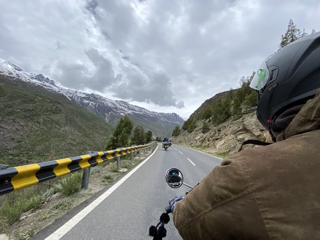 Дальше наш путь лежал через бескрайнюю долину с марсианскими пейзажами. Мы долго ехали по ней с одной остановкой на масала чай, а потом начался первый перевал этого дня, чем выше наша команда поднималась, тем пасмурнее становилось вокруг. Каменные горы стали холмами, собранными как будто из грязи/пыли. Дорога стало убитой/расшатанный. Мы ехали по какой-то полноценной артерии, часто и много раз обгоняя фуры, автобусы, машины и другие мотоколонны.