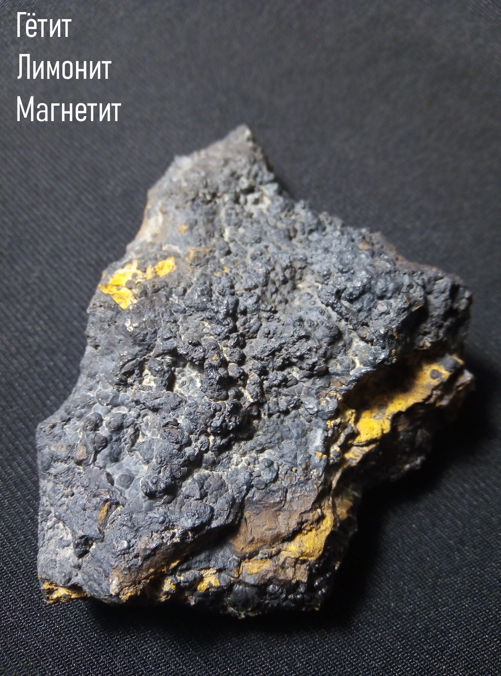 Имеется ввиду кора лимонита, внутри не знаю что, железистле что-то, скорее всего магнетит. Не проверял