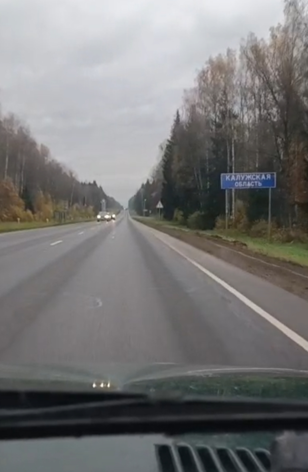 Вот еду я по трассе А-108, в народе "бетонка". И проезжаю неприметный указатель "Калужская область". Вот так выглядит:
